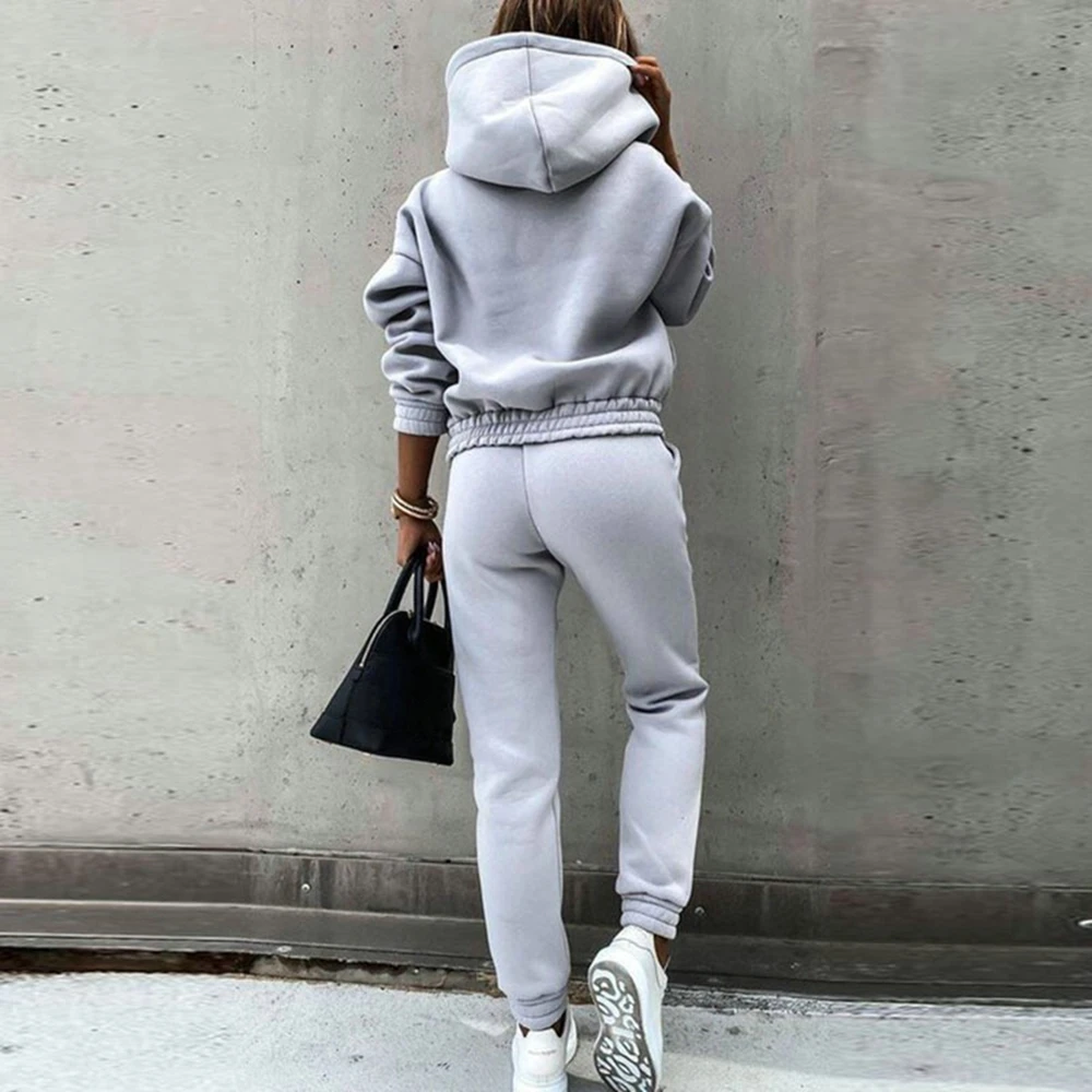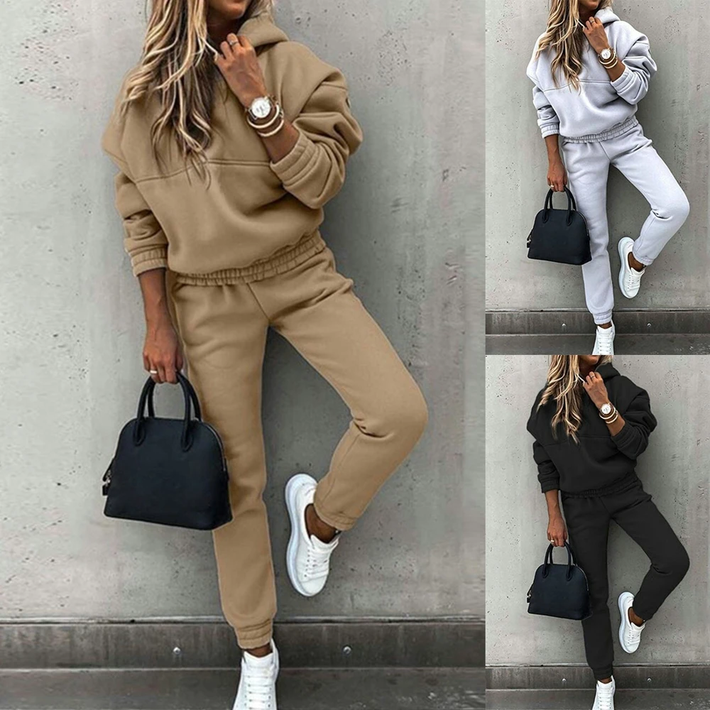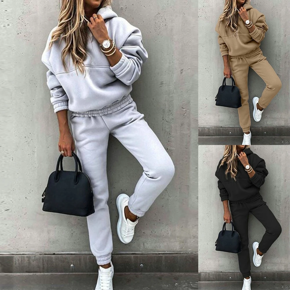 Теплый спортивный костюм, комплект из 2 предметов, толстовка с капюшоном и длинные брюки, спортивный костюм, женский свитшот, спортивный костюм для женщин