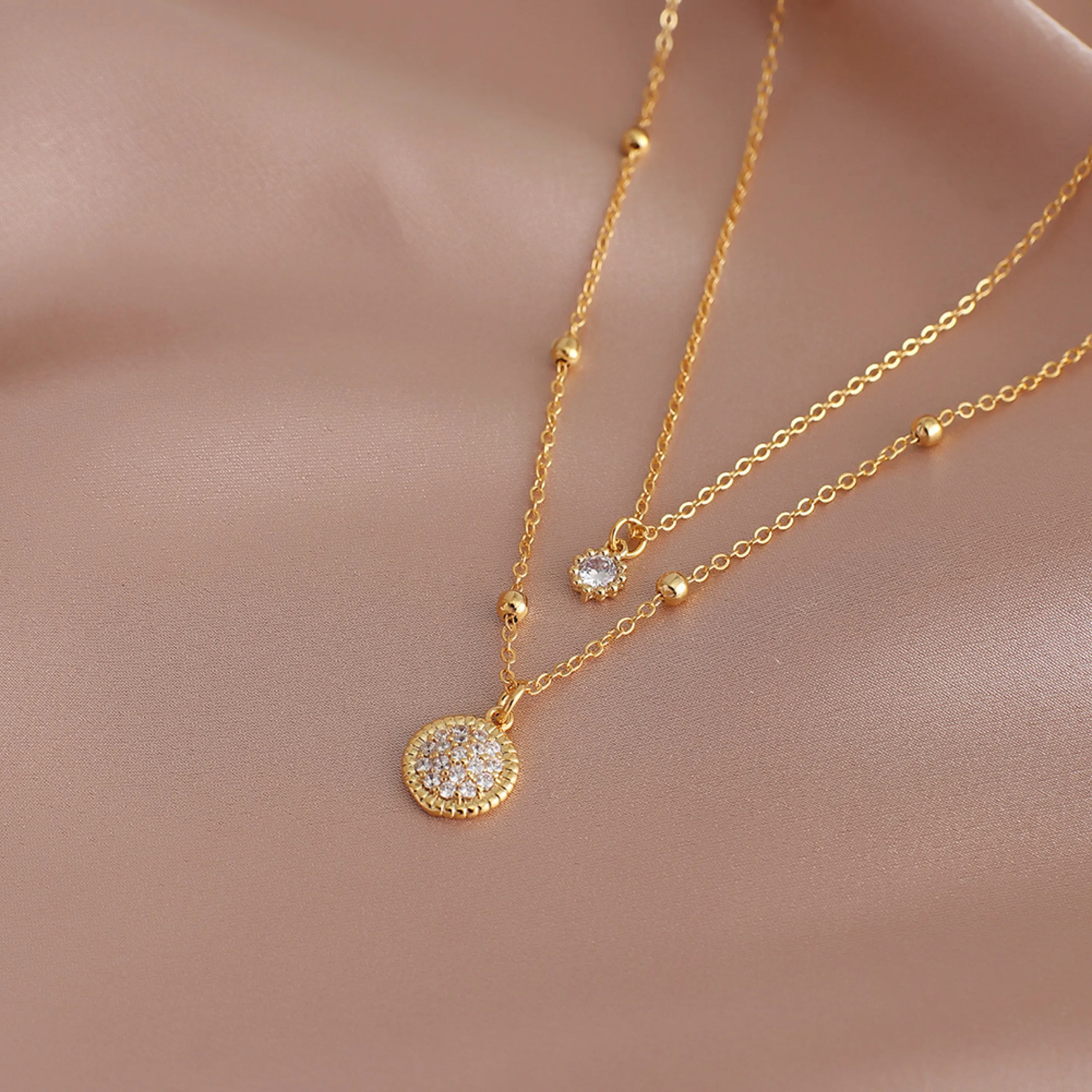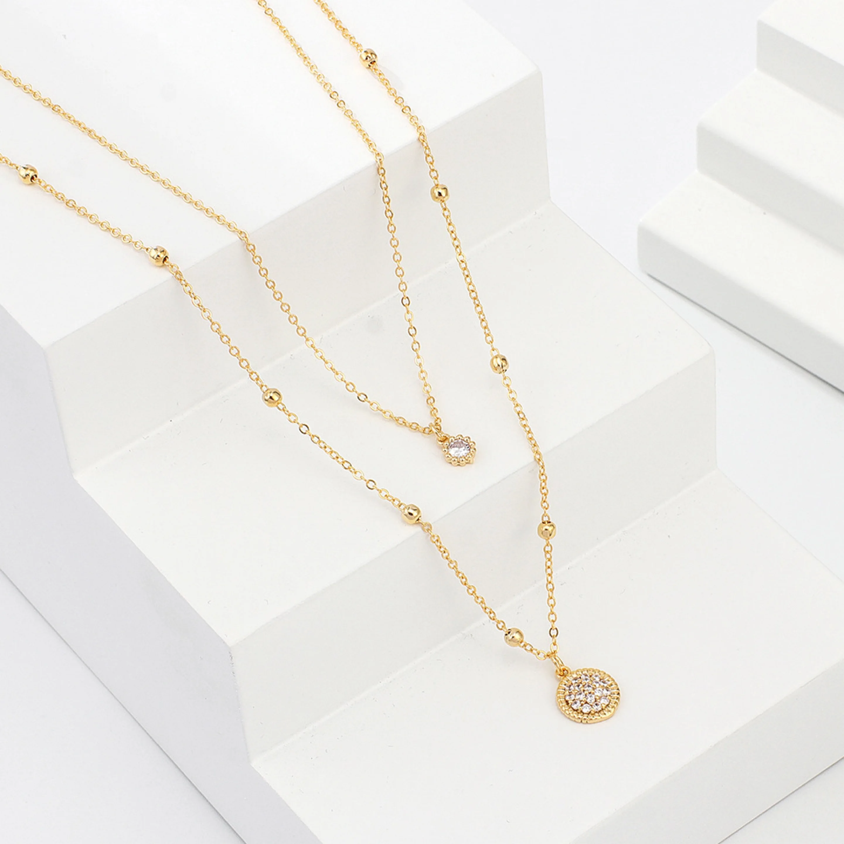 Gojomem позолоченное циркониевое круглое геометрическое ожерелье с подвеской для женщин Двухслойное роскошное ожерелье