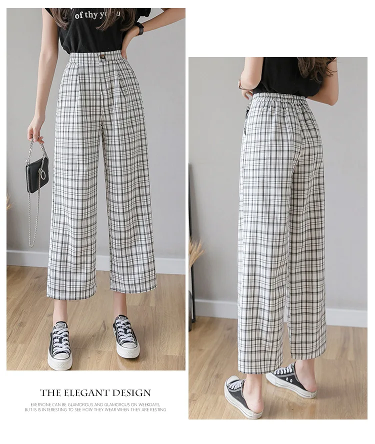 Женские винтажные клетчатые брюки, повседневные широкие брюки в Кор...