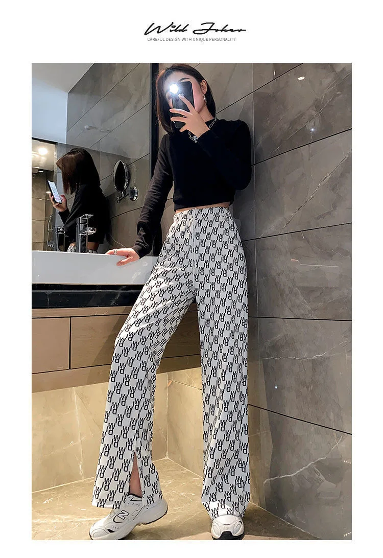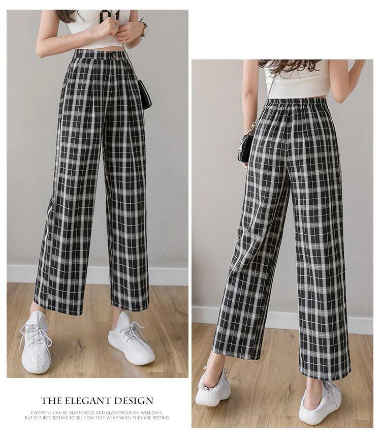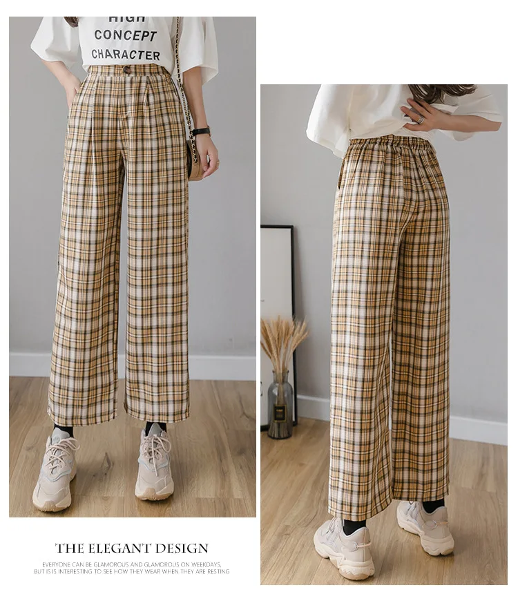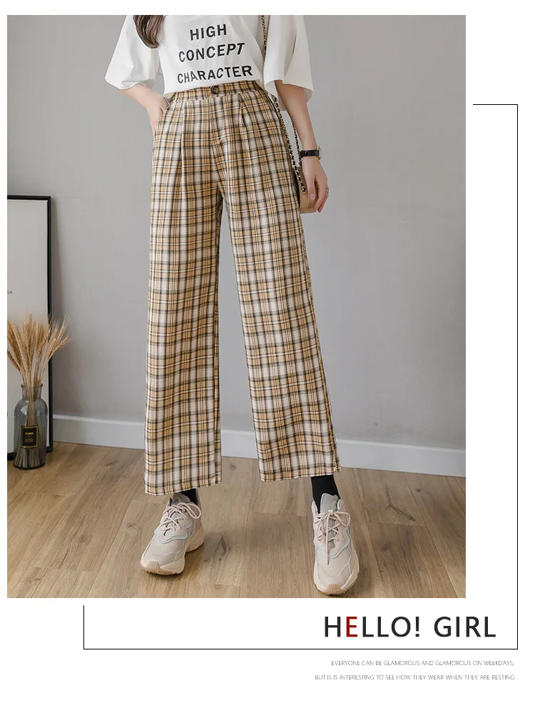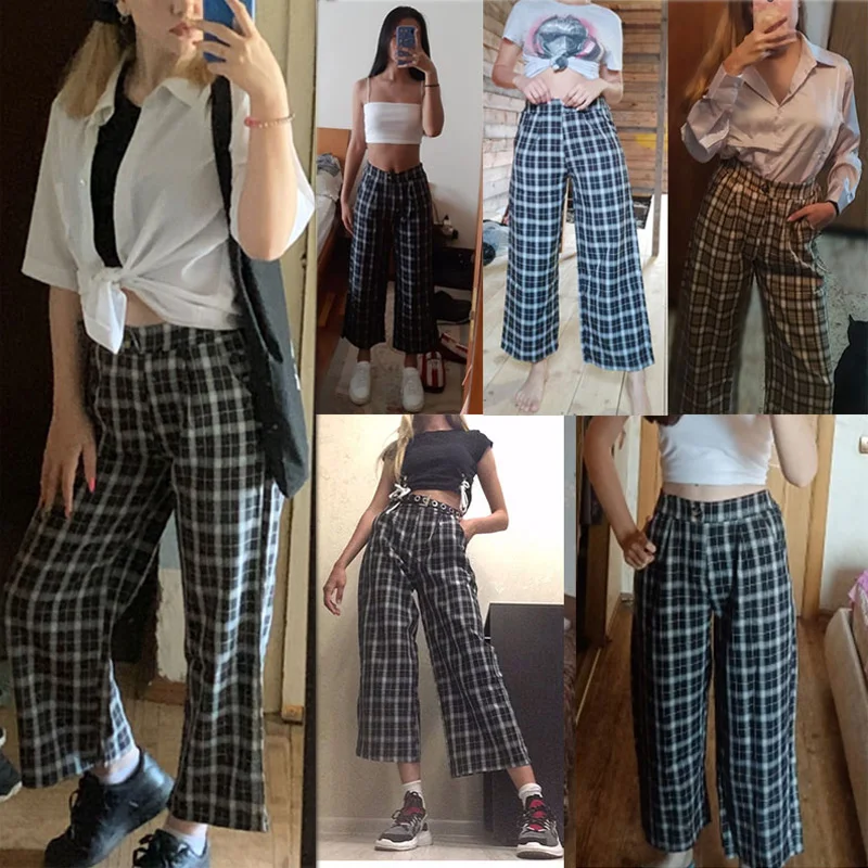 Брюки женские клетчатые с принтом, винтажные повседневные Модные свободные штаны в Корейском стиле, уличная одежда с завышенной талией и широкими штанинами, весна-лето