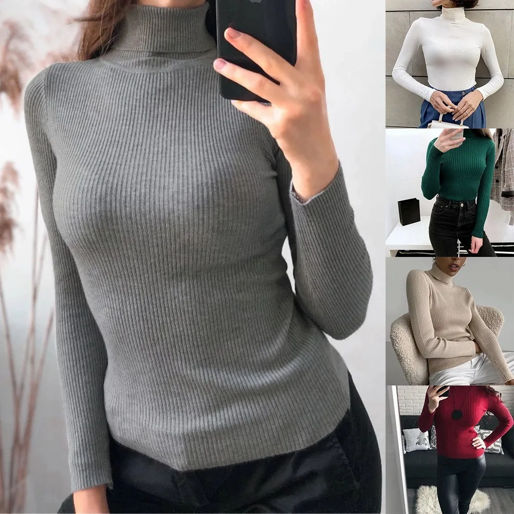 Базовая водолазка 2021, женские свитера, осенне-зимние топы, тонкий женский пуловер, вязаный свитер, джемпер, мягкий теплый свитер