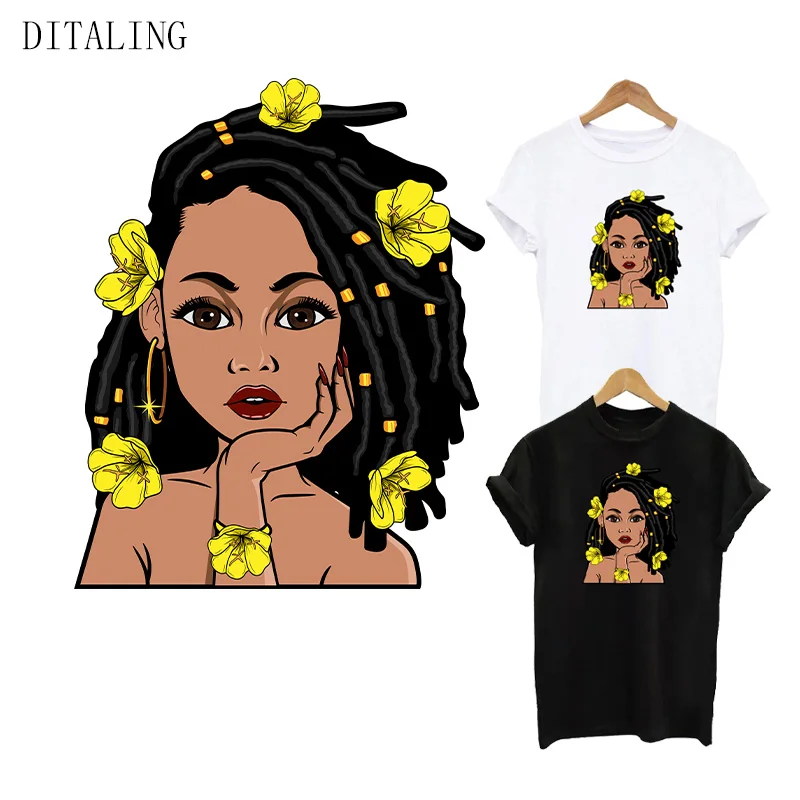 Сделай Сам Футболка патч на одежду красивая черная девушка термо наклейка на одежду теплопередачи Патчи модные женские утюжки на наклейки