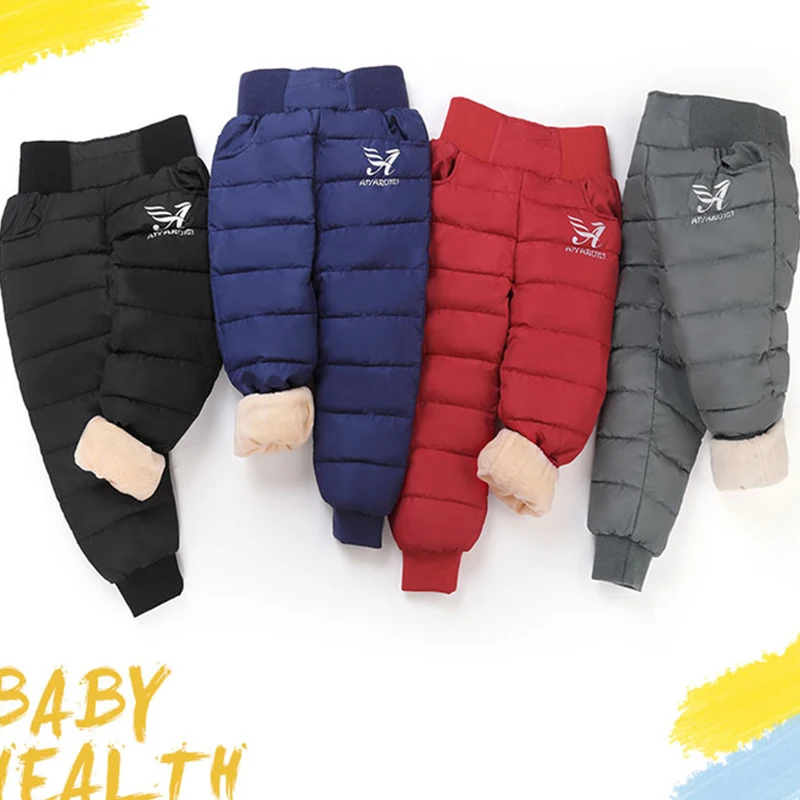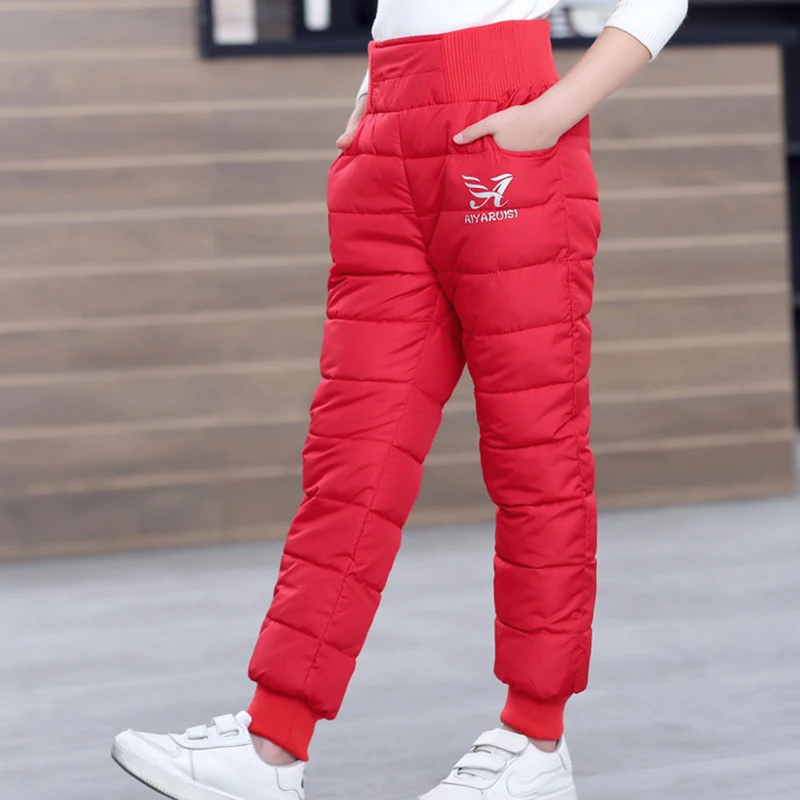 Модные теплые пуховые штаны для девочек и мальчиков, Зимние Детские высококачественные пуховые штаны, подростковые пуховые брюки, детские лыжные пуховые штаны с подкладкой