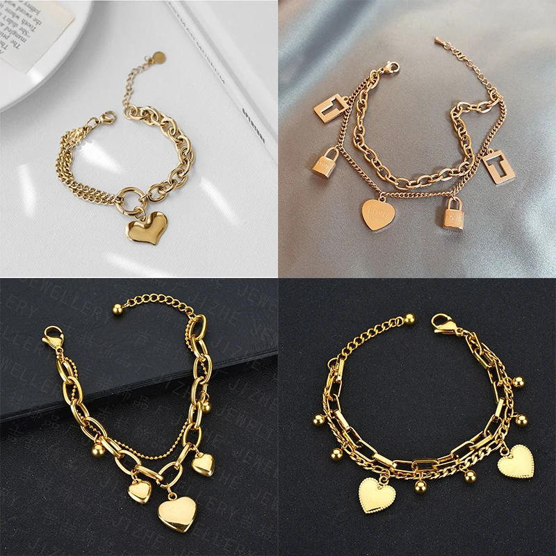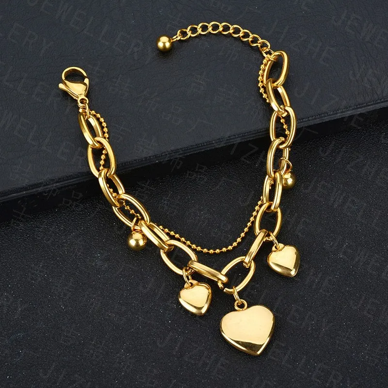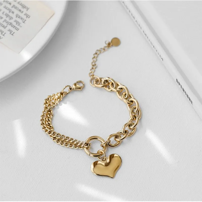Женский двухслойный браслет MEYRROYU, браслет из нержавеющей стали с сердцем из двух цветов, Подарочная бижутерия, 2021