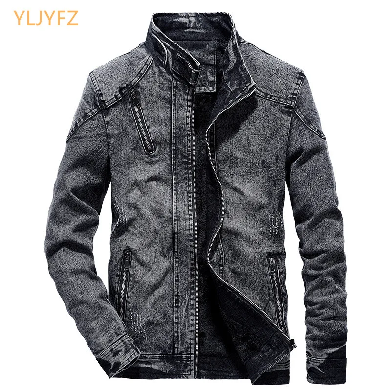 Мужские джинсовые куртки, винтажные хлопковые приталенные джинсовые...