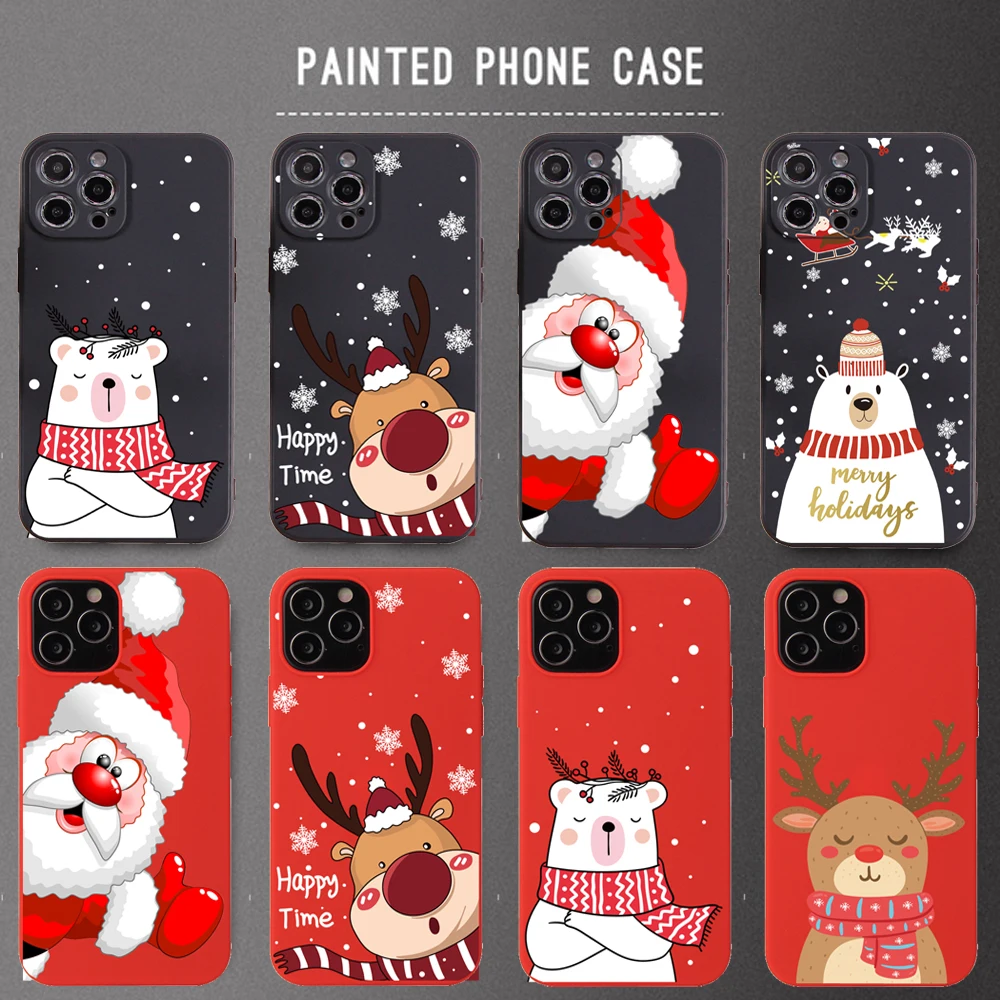 Новогодний матовый чехол для iPhone 12, 11 Pro Max, 7, 8 Plus, X, Xr, Xs, SE20, 13, 6S, рождественский подарок, силиконовый чехол для телефона с Санта-Клаусом