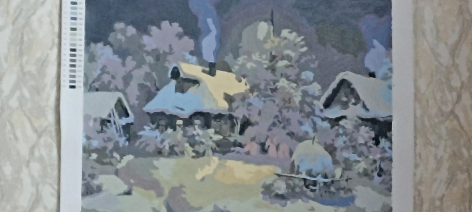 Холст упакован хорошо. ничего не помялось. Краски свежие, в более, чем достаточном количестве. Осталось ещё на 3-4 картины. Контур рисунка хорошо прорисован, но цифры проставлены не везде. Нет оригинальной картинки в наборе, поэтому сложно подобрать нужный цвет.