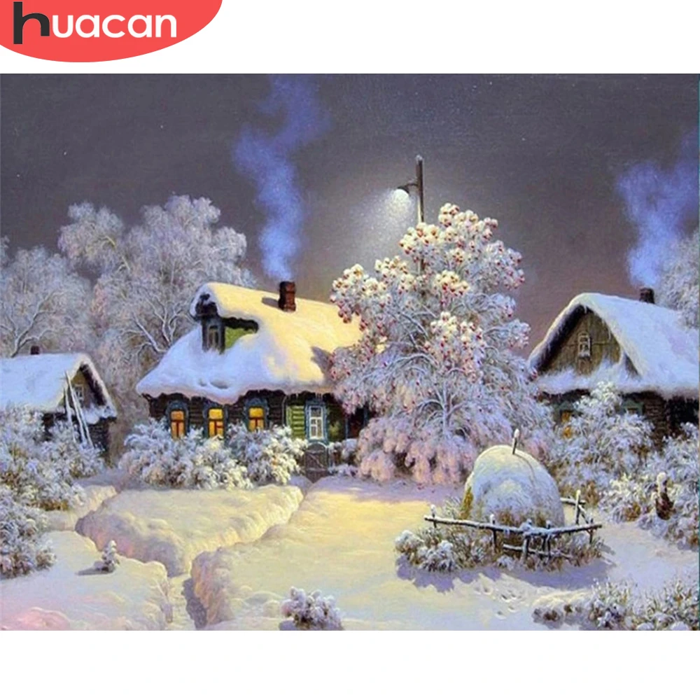 HUACAN картина маслом по номерам зимний пейзаж DIY рамка фотографии по номеру Дом снег Краска на холсте DIY украшение дома