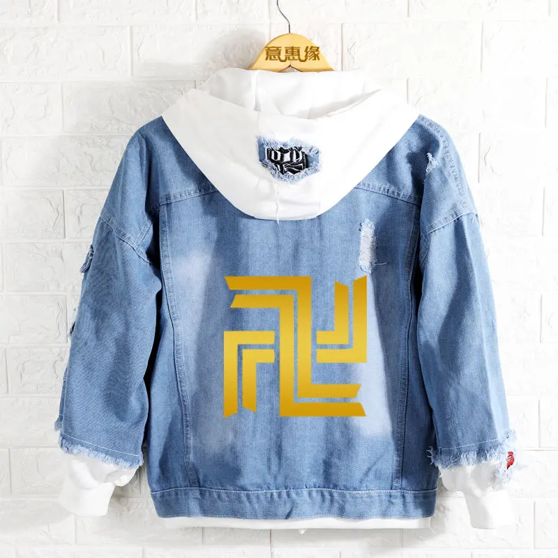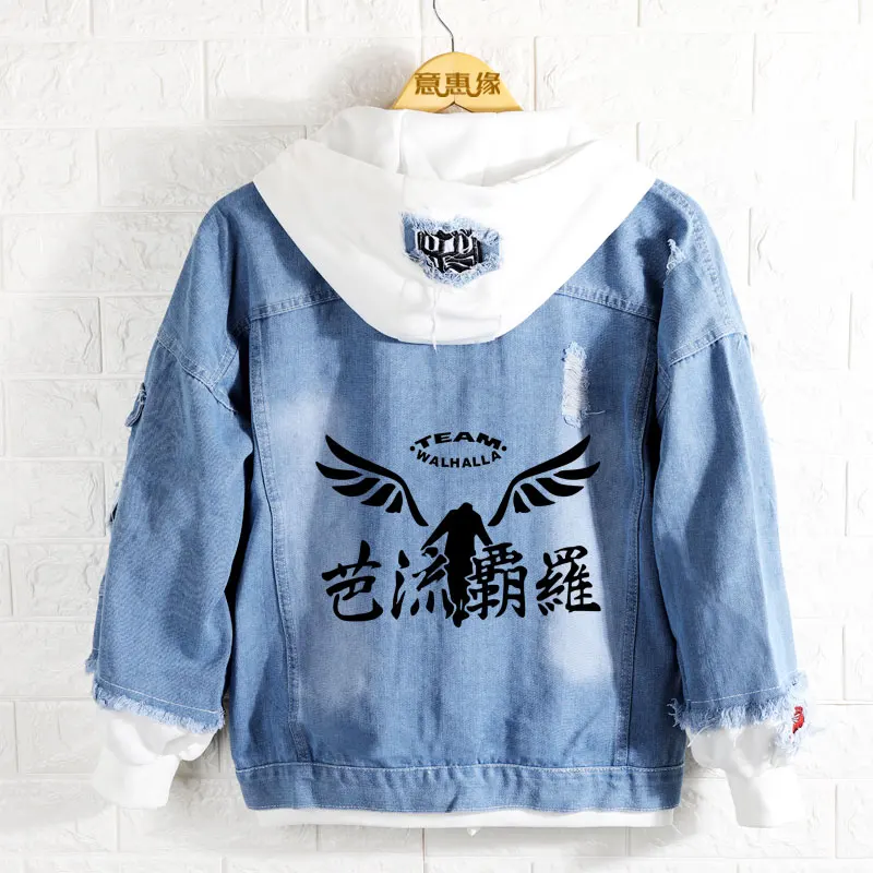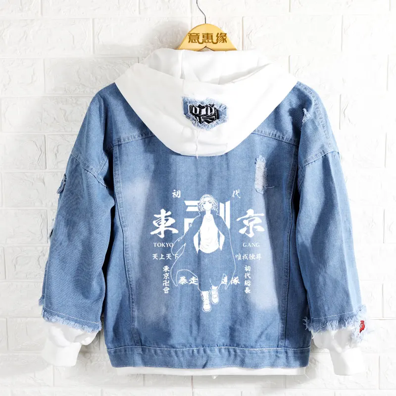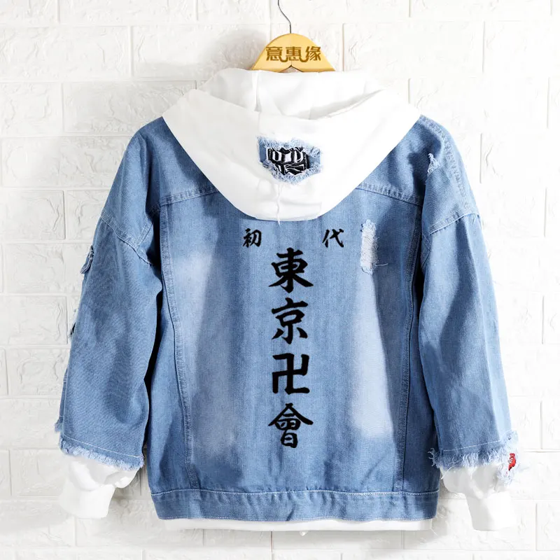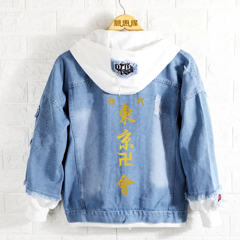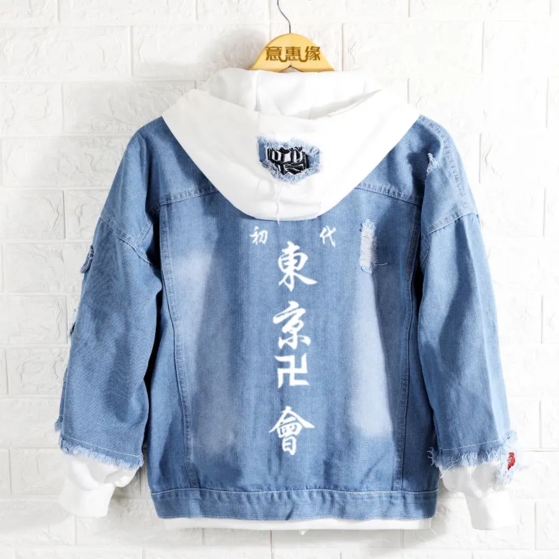 Джинсовая куртка с капюшоном и принтом из аниме Токийский мстители