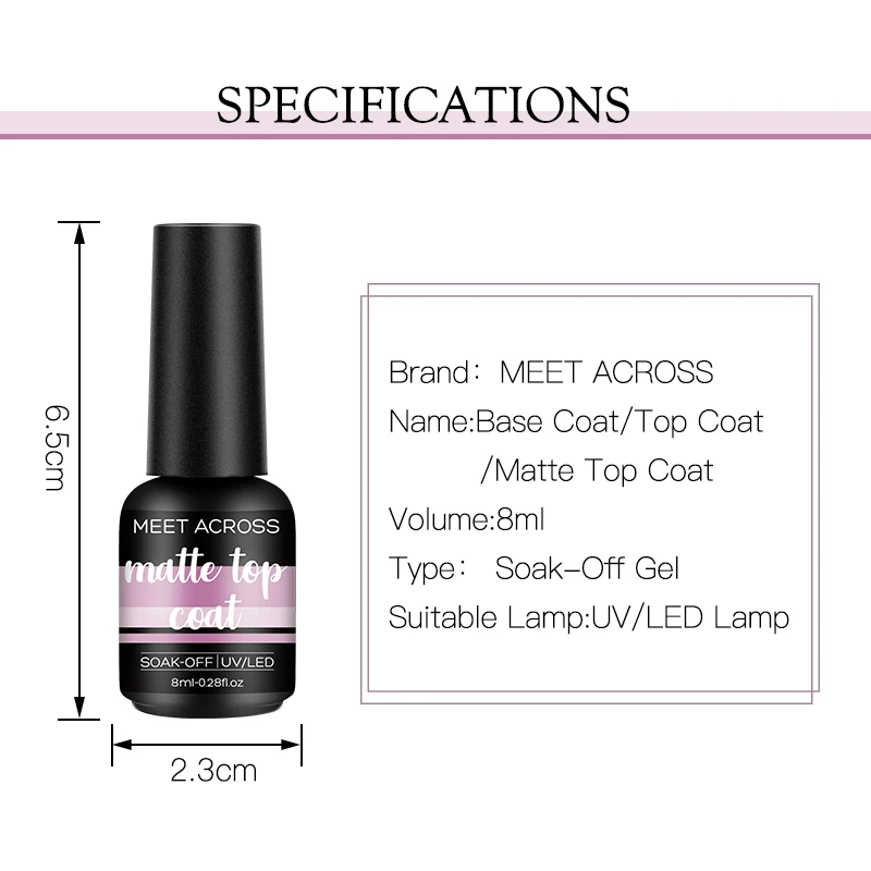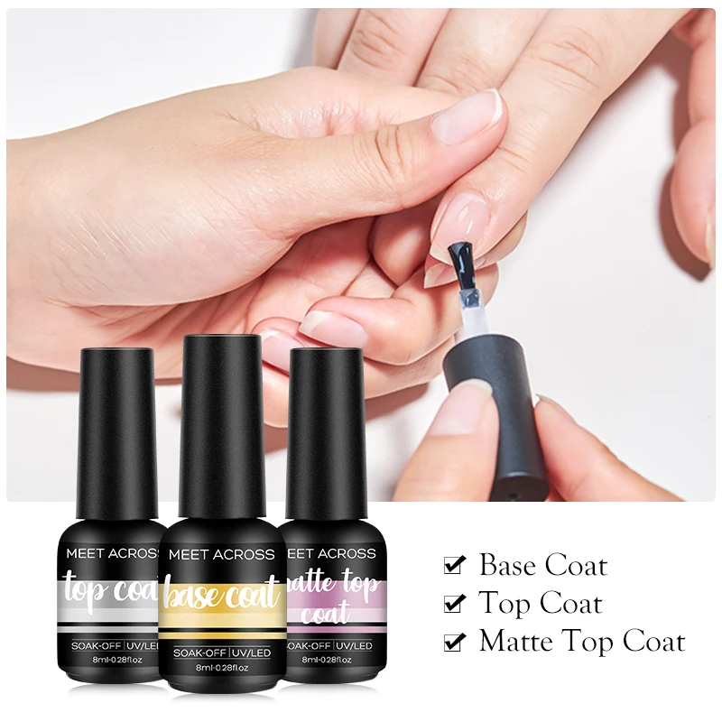 MEET ACROSS базовое верхнее покрытие Гель-лак для ногтей 8 мл Полупостоянный лак функциональный гель матовое верхнее покрытие Цветной Гель-лак