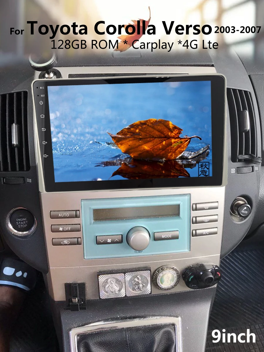 Автомобильный мультимедийный видеоплеер 9 дюймов 128 ГБ Android Сенсорный экран для Toyota Corolla Verso 2005 2006 GPS Авторадио Стерео головное устройство
