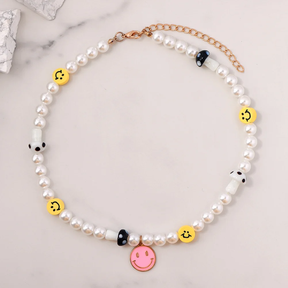 Ожерелье-чокер женское, со смайликом, грибом, жемчугом и бисером, б...