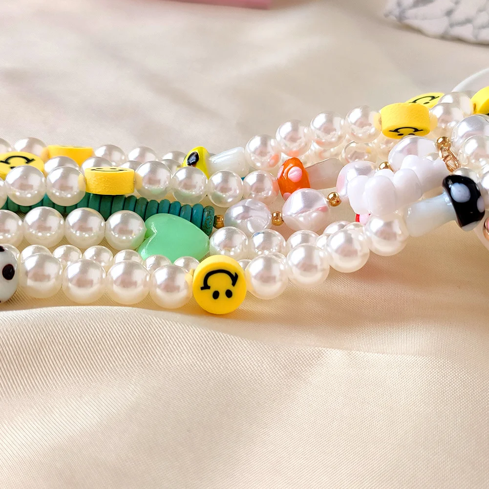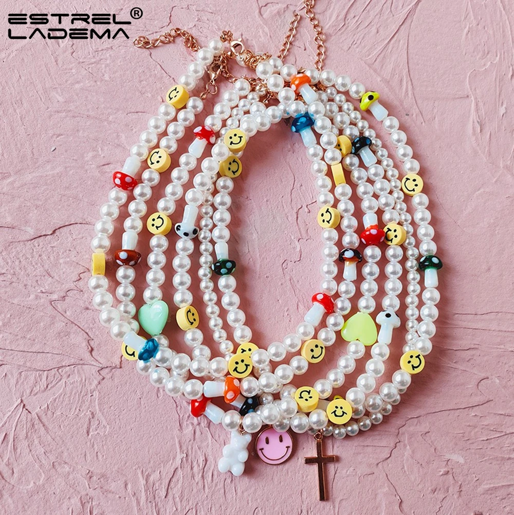 Модное ожерелье с жемчужными бусинами и улыбающимся лицом, ожерелье для женщин ручной работы, милое красочное ожерелье с бусинами в форме сердца и медведя, новые ювелирные изделия в подарок