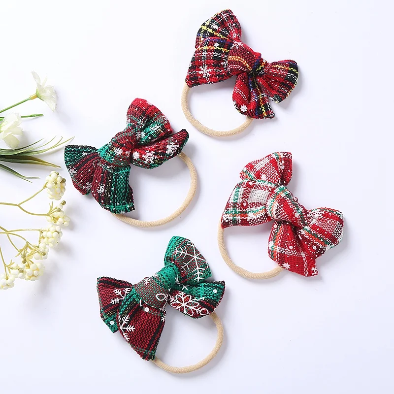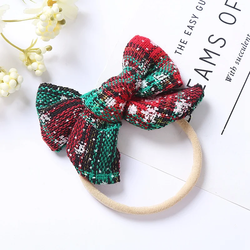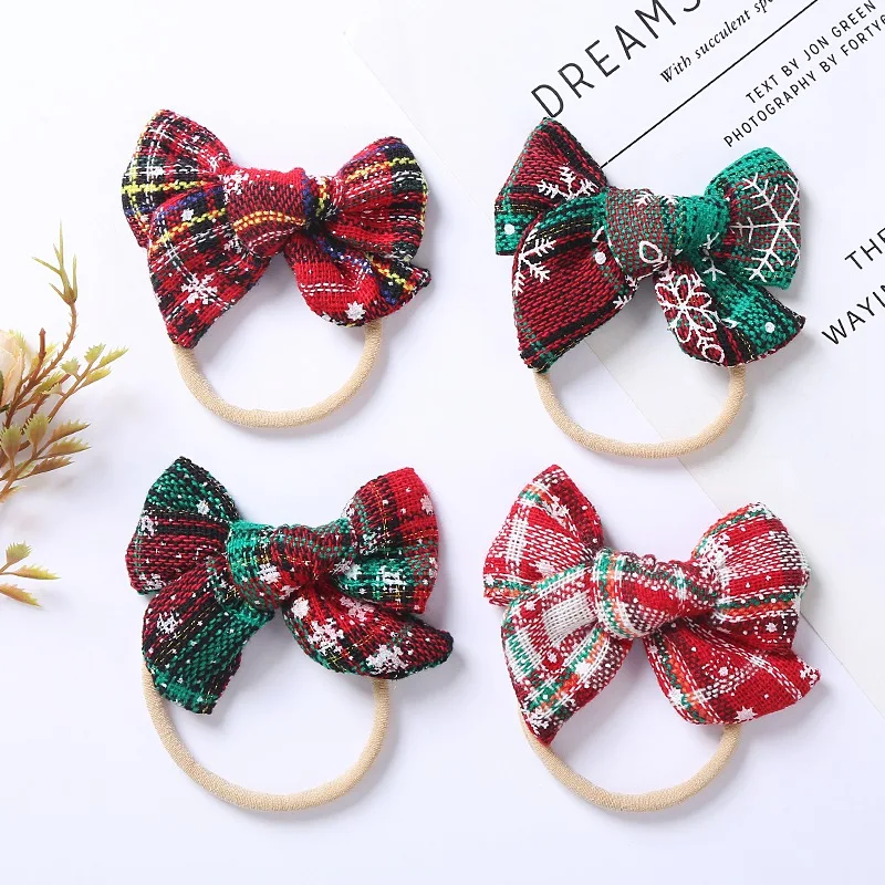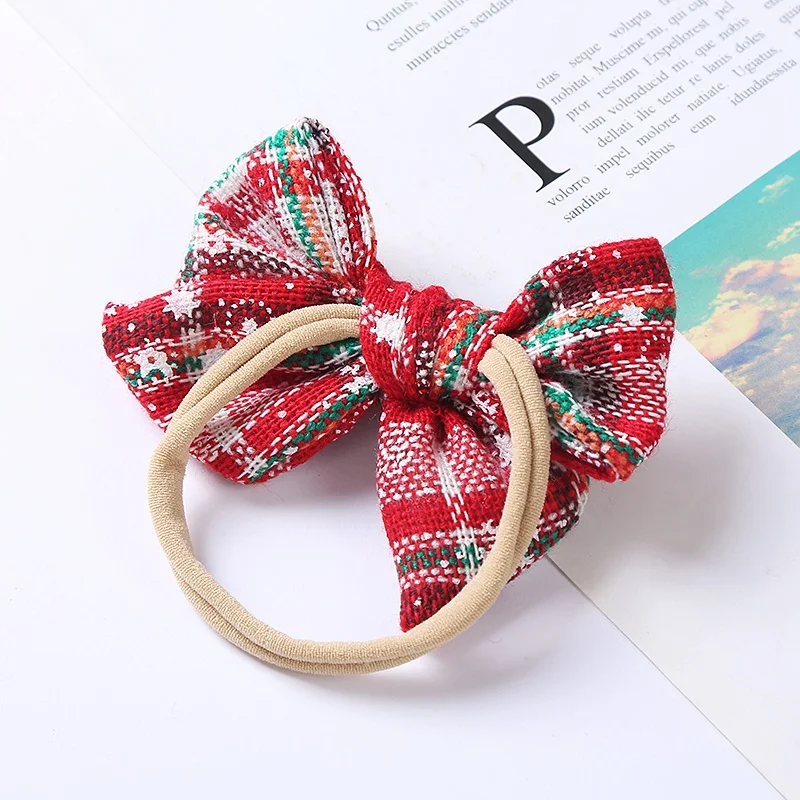 Милые повязки на голову для маленьких девочек, вязаные нейлоновые повязки на голову с бантом, рождественские повязки для волос для детей, повязка для волос для девочек, аксессуары для новорожденных