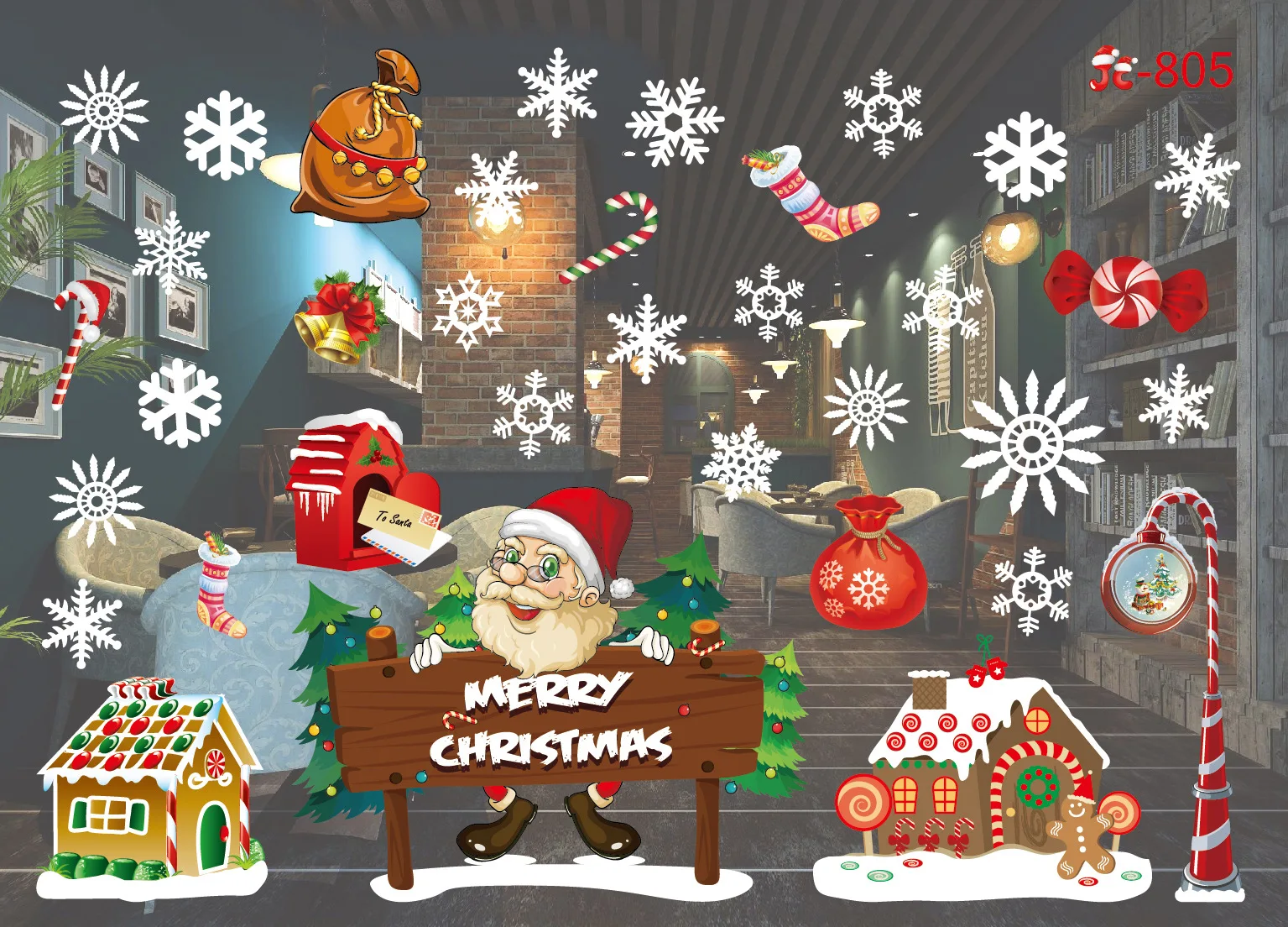 Рождественская Наклейка на окно Санта Клаус Снежинка наклейки зимние Наклейки на стены для детских комнат Новогодние рождественские украшения на окно