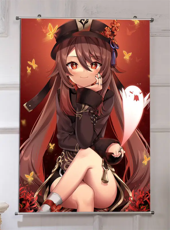 Аниме Genshin Impact hu tao домашний декор плакат Настенная картина прокрутка 60*90 см домашний декор плакат каллиграфия роспись