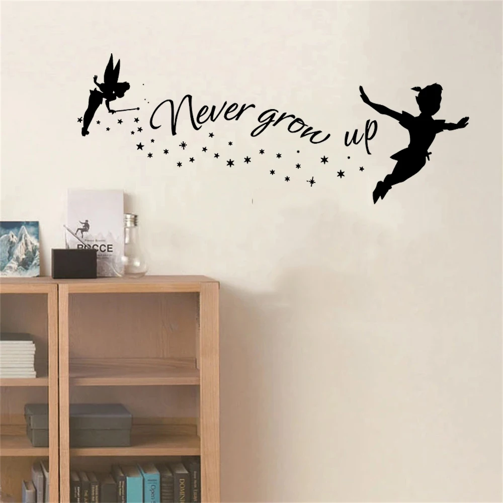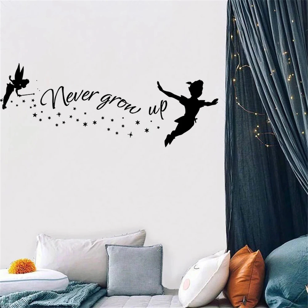 Никогда не расти Наклейка на стену цитаты из Питера Пэна виниловая наклейка нетландия настенные фрески питомника украшение детской комнаты