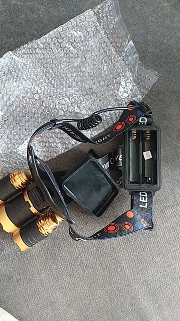 товар полностью соответствует описанию . налобник я выиграл за 0,74 рубля . как - то даже неожиданно . в комплектации только шнур для зарядки . а аккамуляторы всё равно пришлось бы дозаказывать . в комплекте продавцы присылают очень слабые . фонарик смотрится прикльно . пришел в непомятой коробке .упакован в пупырку . трек отслеживался доставка неделю . выиграшем доволен . спасибо.