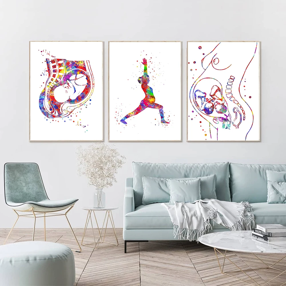 Художественная Картина на холсте для йоги для беременных женщин докторский акушерский подарок лезвие акварельный детский художественный плакат и печать Настенный декор