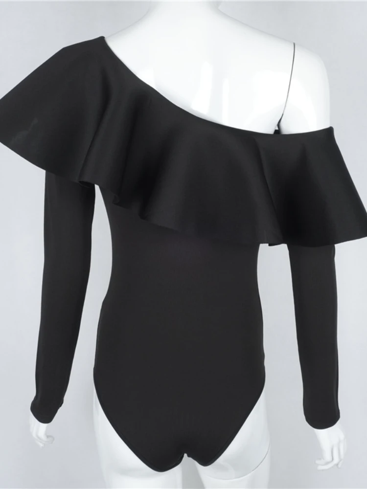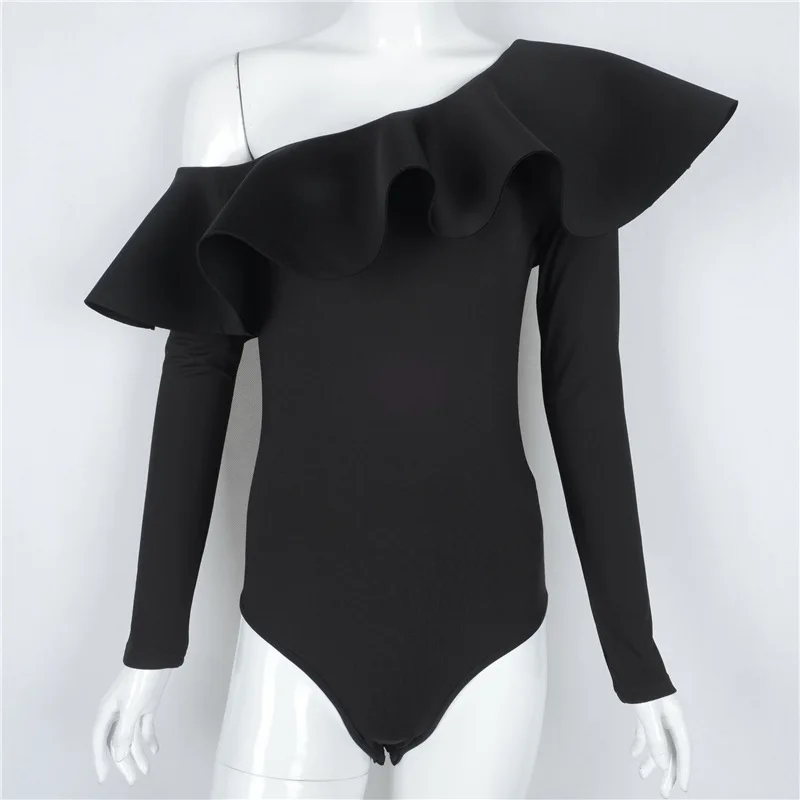 Женское боди с длинным рукавом, черное боди с оборками, осенняя одежда