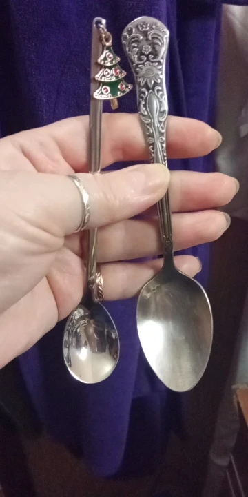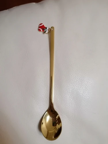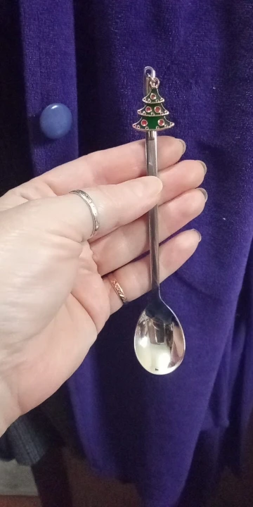 Милая ложечка в подарок на новый год. Сделана качественно. Материал не дешёвый. Сделала фото- сравнение с обычной чайной ложечкой.