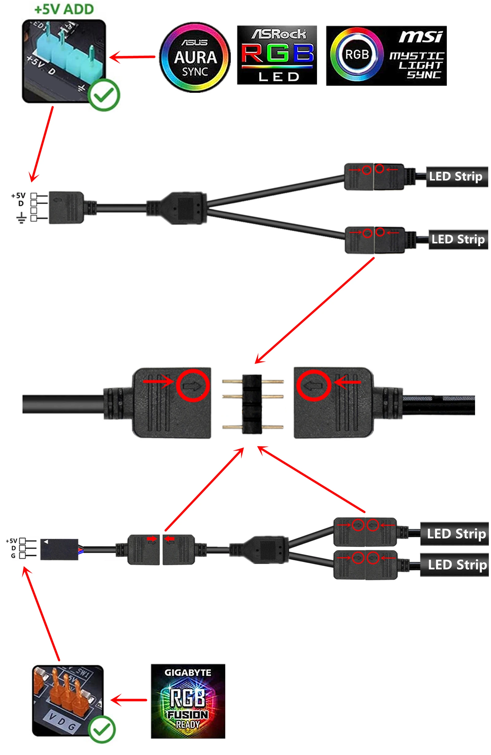 Для ASUS Aura SYNC,MSI Mystic светильник SYNC:(+ 5 В, DATA,N/A,GND)