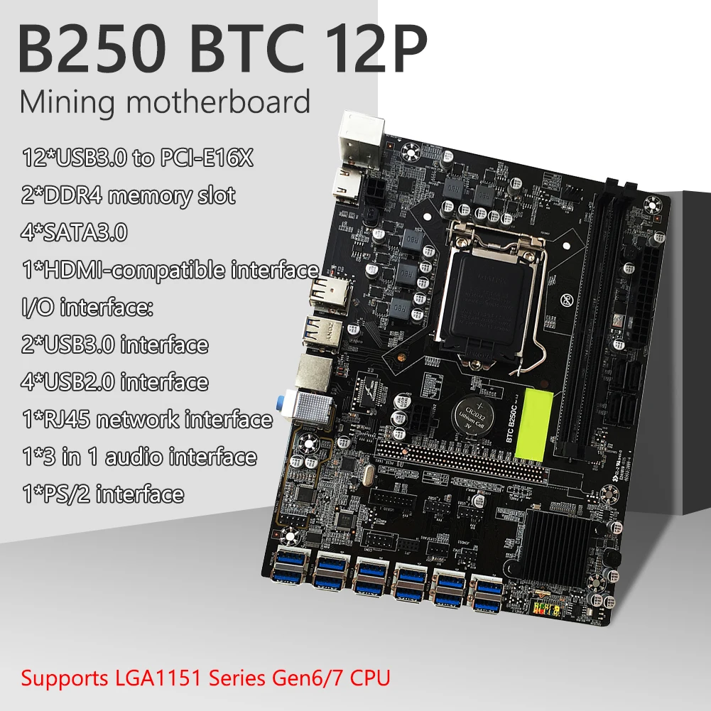 Настольный компьютер B250C BTC 12P, материнская плата для майнинга,...