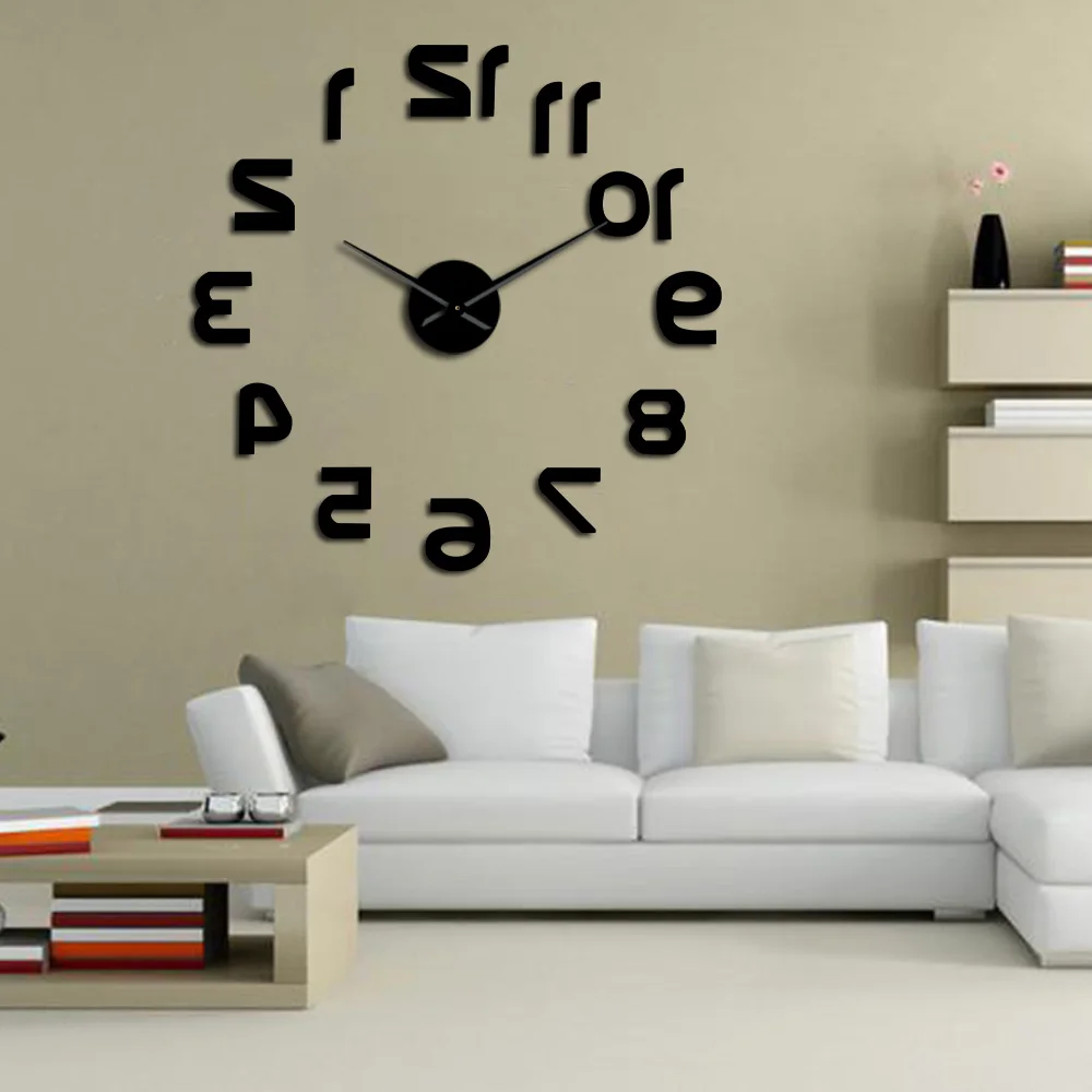 Большие настенные часы для самостоятельной сборки, современный дизайн, безрамочные настенные часы с обратными цифрами, роскошные зеркальные эффекты, большая игла часы с обратной стороны
