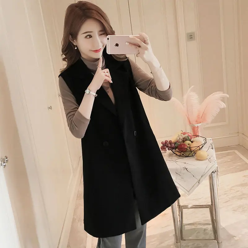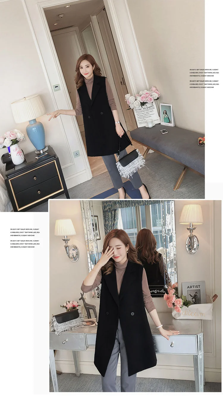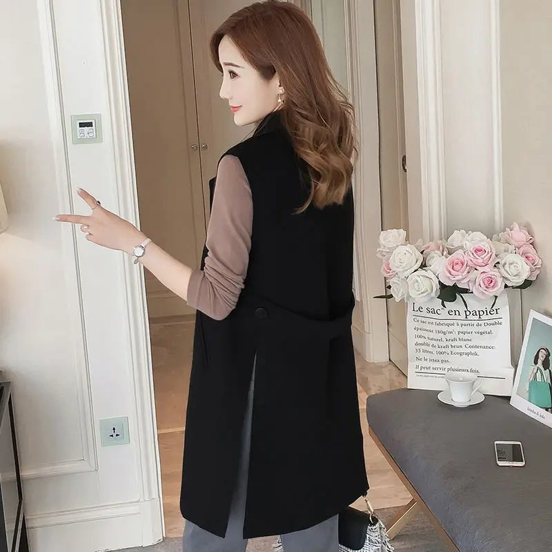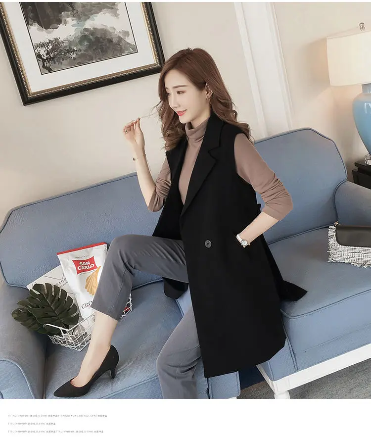 Женский Повседневный однотонный жилет без рукавов, элегантный длинный жакет, жилет, женский осенний Новый модный свободный костюм, жилет K11