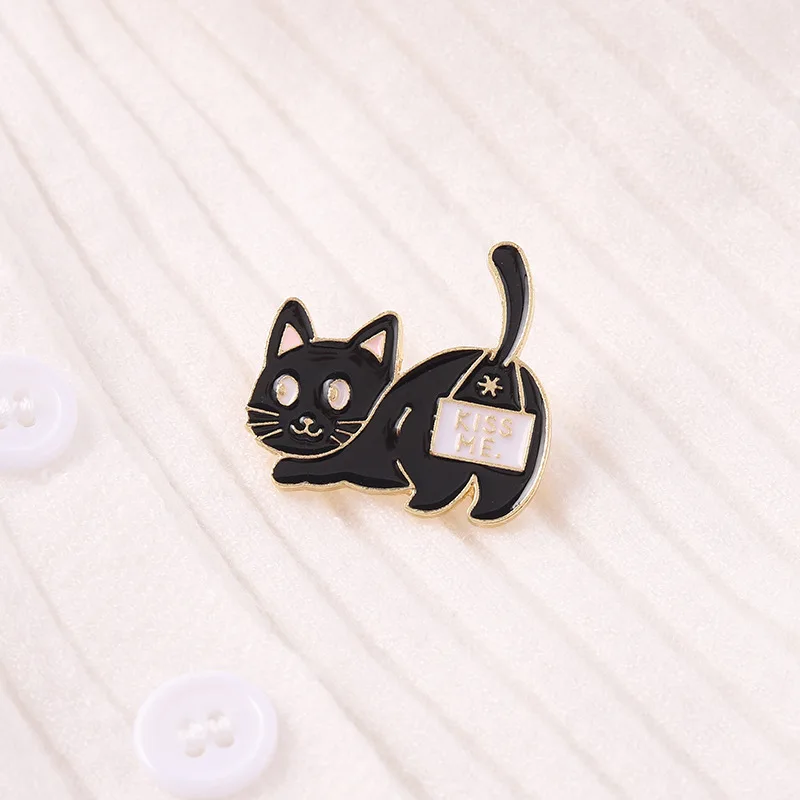 Милая Черная кошка, значки с надписью Kiss Me, заколки на лацкан дл...