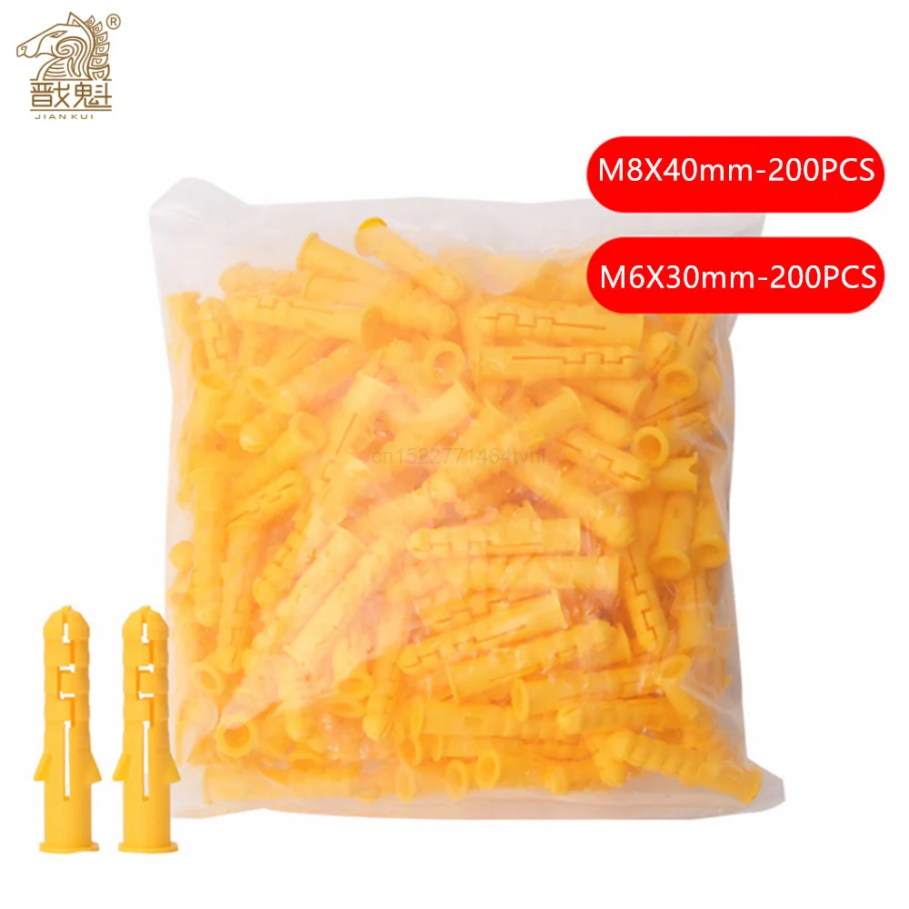 Пластиковая Расширительная Труба, 200 шт., M6 * 30 мм, M8 * 40 мм, резиновая пробка, пластиковая труба, нейлоновая Расширительная Труба, винт, настенные розетки