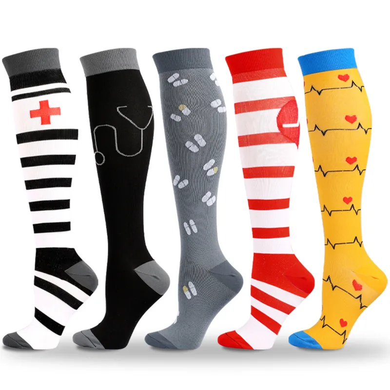 HYSAIXIA Компрессионные носки многоцветные ЭКГ давление Мужчины Женщины Мужчины диабет варикозное расширение вен марафон чулки Пешие прогулки медсестры бег