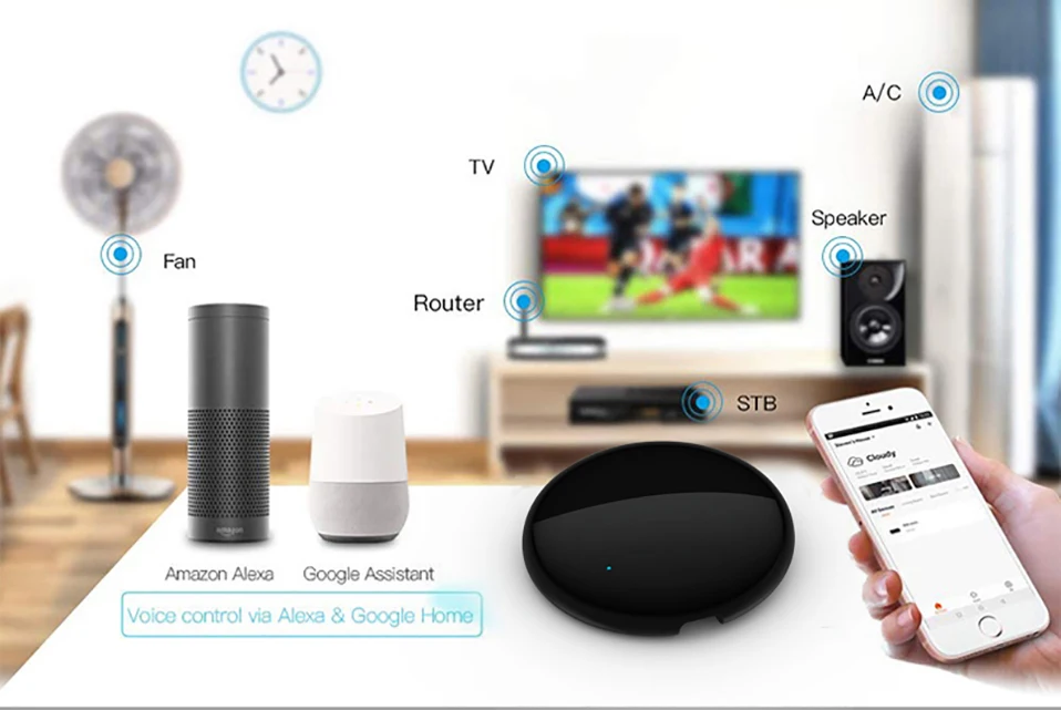 С помощью этого универсального ИК-пульта дистанционного управления вы можете использовать ваш смартфон для управления бытовой техникой, такой как STB (телеприставка), ТВ-приставка, телевизор, кондиционер, вентилятор, DVD и т. Д. Совместимость с большинством брендов, для получения подробной информации, пожалуйста, обратитесь к списку поддерживаемых брендов в приложении. Кроме того, он имеет функцию обучения, позволяет Копировать Ключевые функции оригинального пульта дистанционного управления в приложение.Примечание: Не совместим с бытовыми приборами, которые используют пульт дистанционного управления RF или BLUETOOTH.1. Массивная база данных ИК-кодовПоддержка брендов 4000 +, ИК-код 50000 + в облаке, поддержка библиотеки устройств ed постоянно обновляется облаком.2. Встроенный датчик температуры и влажностиС помощью встроенного датчика вы можете узнать температуру и влажность в помещении в любое время. И в соответствии с их ценностями, сделайте последующую автоматизацию. Например, включите кондиционер, когда температура выше 26 ℃, и включите увлажнитель воздуха при влажности менее 50%3. Дистанционное управление с помощью приложенияДистанционное управление бытовой техникой с помощью приложения «Tuya Smart» в вашем смартфоне в любом месте в любое время. Например: Включите home A/C заранее, наслаждаясь комфортной температурой, как только вы вернетесь домой.4. Легко установить и добавить в приложениеПосле того, как вы подключите кабельную линию к устройству, устройство начинает запускаться, а затем выберите функцию автоматического сканирования приложения, чтобы найти устройство. Весь процесс занимает всего несколько минут.5. Голосовое управлениеПри подключении интеллектуальных динамиков, таких как Amazon Alexa, Google Home, вы можете управлять своей бытовой техникой голосом. Например: Alexa, Включите телевизор; Ок Google, установите температуру кондиционирования воздуха до 25 градусов.6. Сценарий и автоматизация в приложенииСценарий состоит из 1 или более действий. Создав «Сценарий», вы можете управлять несколькими устройствами одним нажатием; Добавляя «автоматизацию» и взаимодействуя с другими устройствами smart home, пульт дистанционного управления Wi-Fi может выполнять действия автоматически в соответствии с такими условиями, как состояние устройства, погода и время.7. Таймер и Автоматический триггерСогласно вашим привычкам жизни, установите переключатели времени для вашей бытовой техники, такие как включение/выключение кондиционера через регулярные промежутки времени.8. Сделай СамНастройка кнопок в умном приложении Tuya, если ваш бренд бытовой техники не входит в список или не поддерживается.9. Вечерние контрольРаботает с Amazon Alexa, Google Assistant, Siri(iOS 12,0 или более поздней версии), Tmall Genie, Tecent Xiaowei, DingDong, Rokid, DuerOS и т. д.