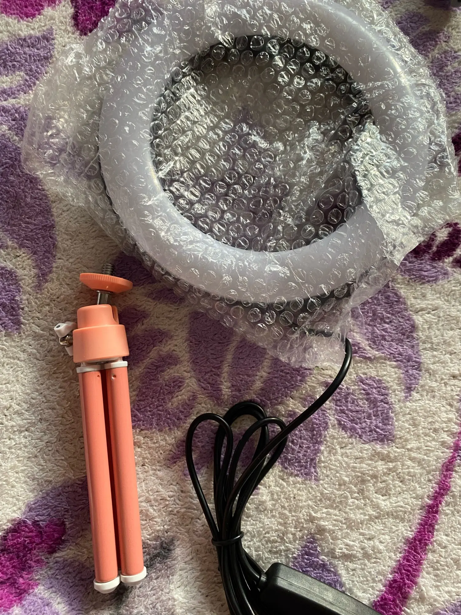 Очень быстрая доставка! Лампа хорошо подсвечивает (использую ее как подсветку для онлайн звонков, чтобы лицо хорошо было видно). Можно переключать на теплый и холодный свет, можно сделать ярче или темнее. Штатив очень хлипкий и короткий, пришлось прикрутить лампу на мой штатив, чтобы лампа была над нутом.