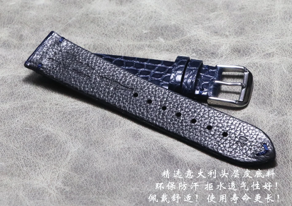 Ремешок мягкий из натуральной кожи под крокодиловую кожу, тонкий голубой браслет для наручных часов, аксессуары для часов, пряжка, 18 мм 19 мм 20 мм 21 мм 22 мм