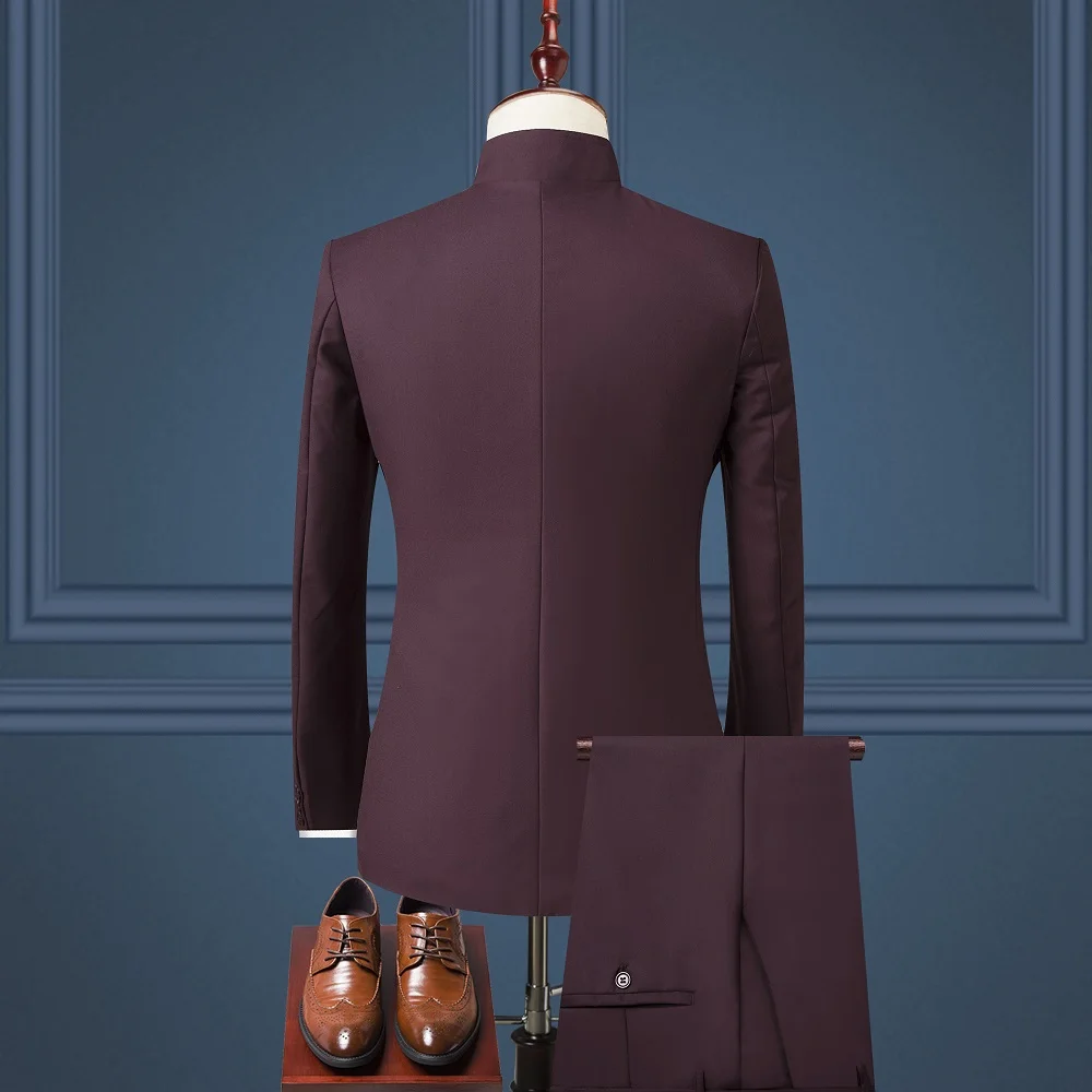 Однотонный новый мужской официальный костюм, комплект из 2 предметов, тонкий свадебный костюм большого размера для мужчин, Классические блейзеры с вышивкой