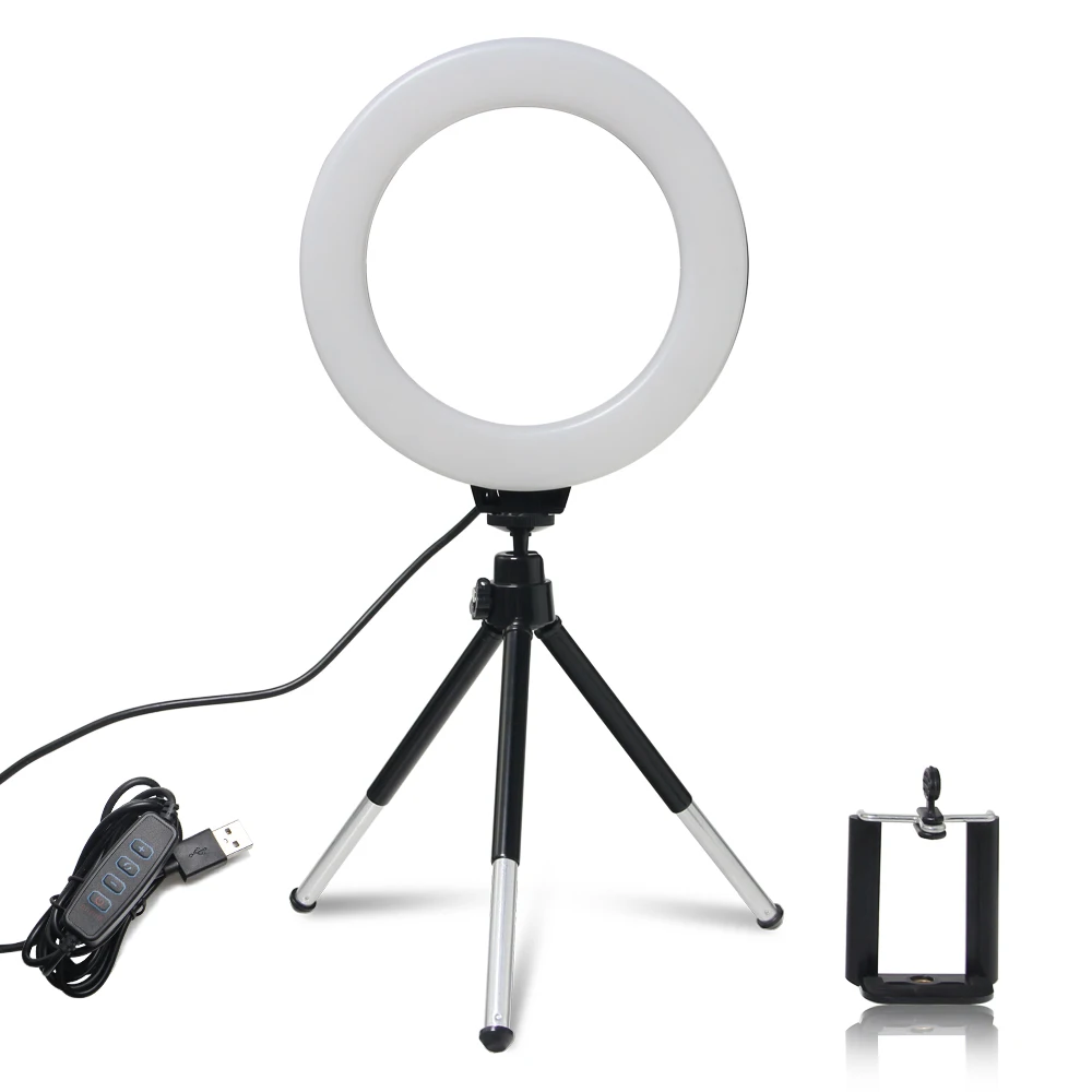 Кольцевой светодиодный светильник, 6 дюймов, со штативом, для съемки Селфи, видео и видео