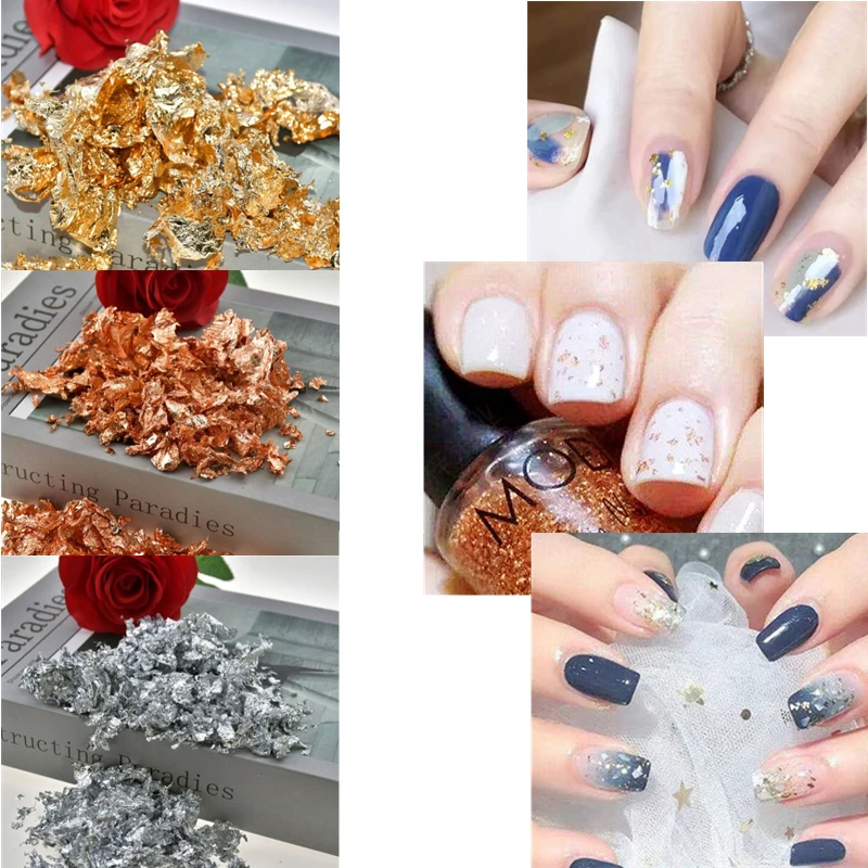 Блестки из имитационной медной фольги золотистогосеребристого цвета, блестки, листы в виде листьев и хлопьев для рукоделия, фольгированная бумага для смолы, позолота, декор для творчества и дизайна ногтей