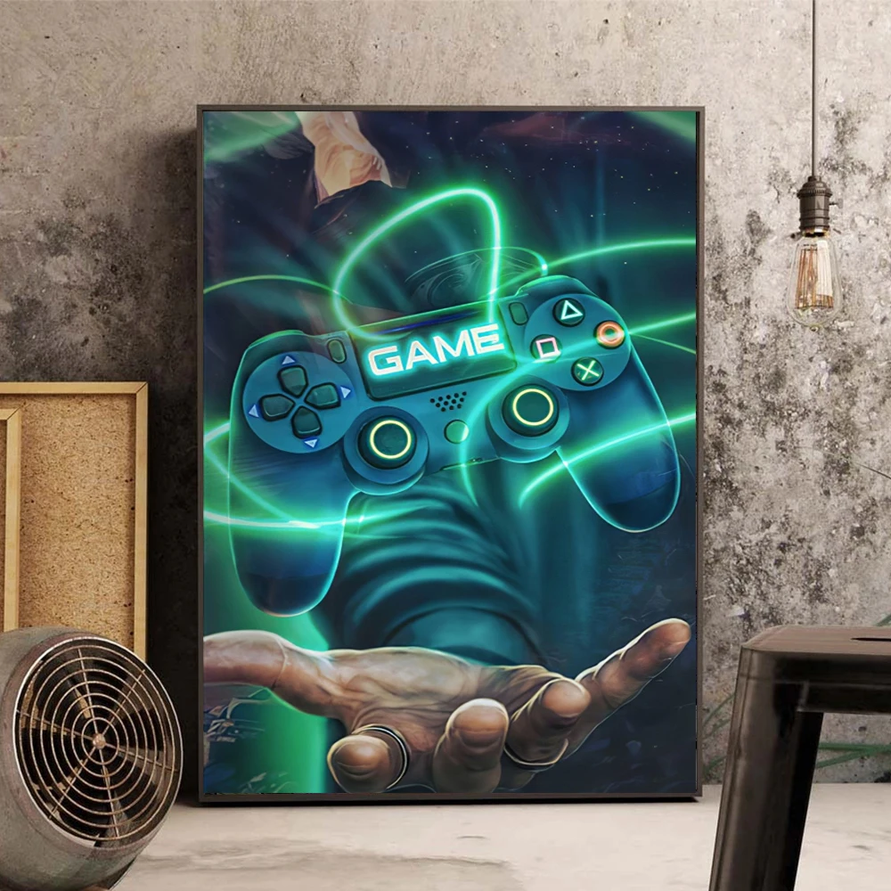Картины на холсте с геймпадом для геймпада, современные красочные постеры и печать, игровая ручка на стене для декора комнаты мальчика, подарок для ребенка