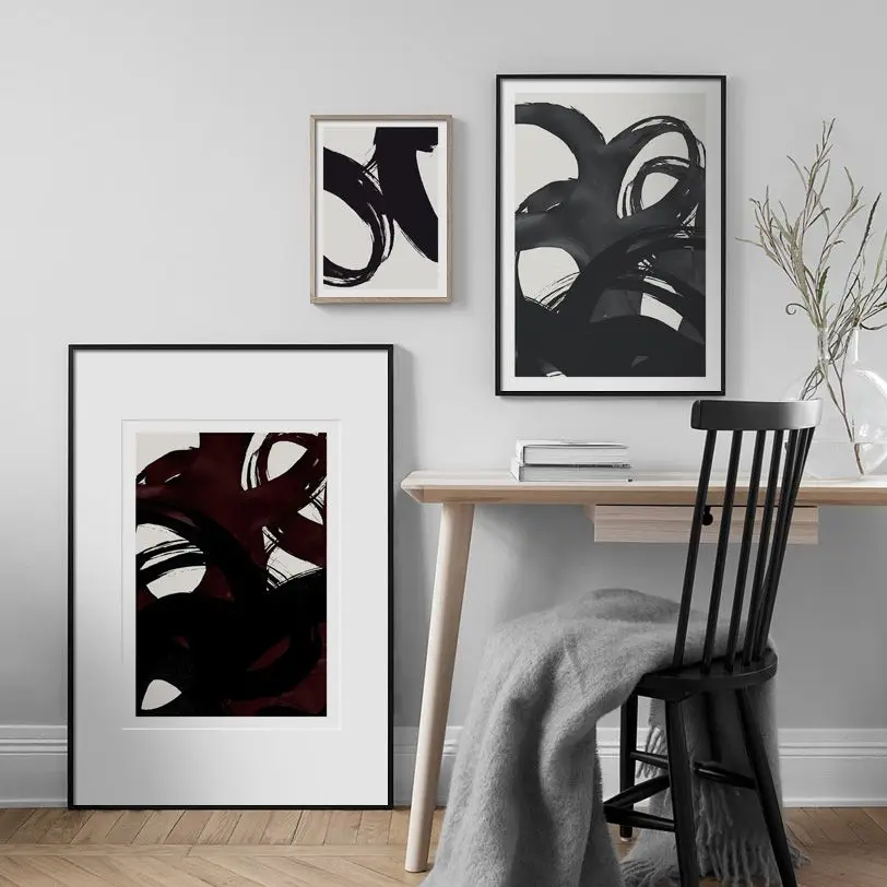 Абстрактная кисть рисования линия скандинавские плакаты и принты современное настенное Искусство Холст Картина галерея украшения картины для гостиной