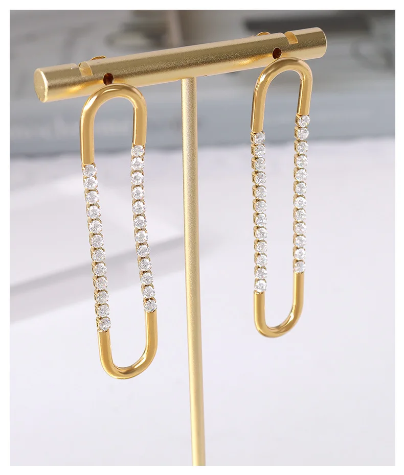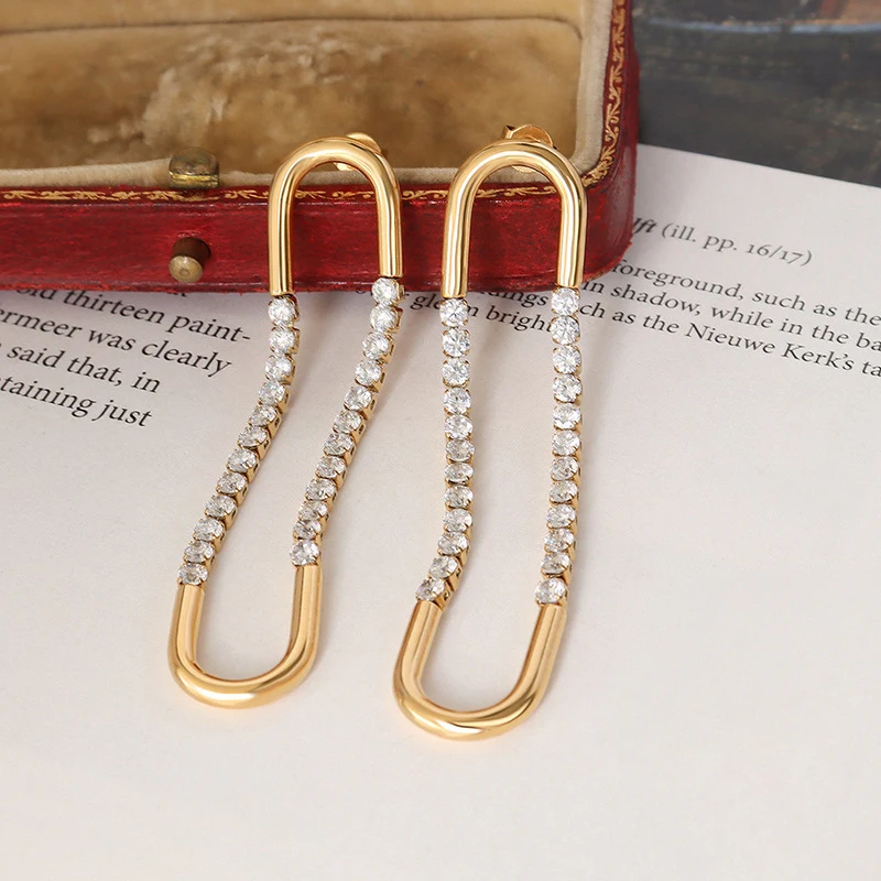 Оптовая продажа, роскошные серьги-подвески из нержавеющей стали 316L с цирконом и камнем, необычные серьги в форме буквы U для девушек