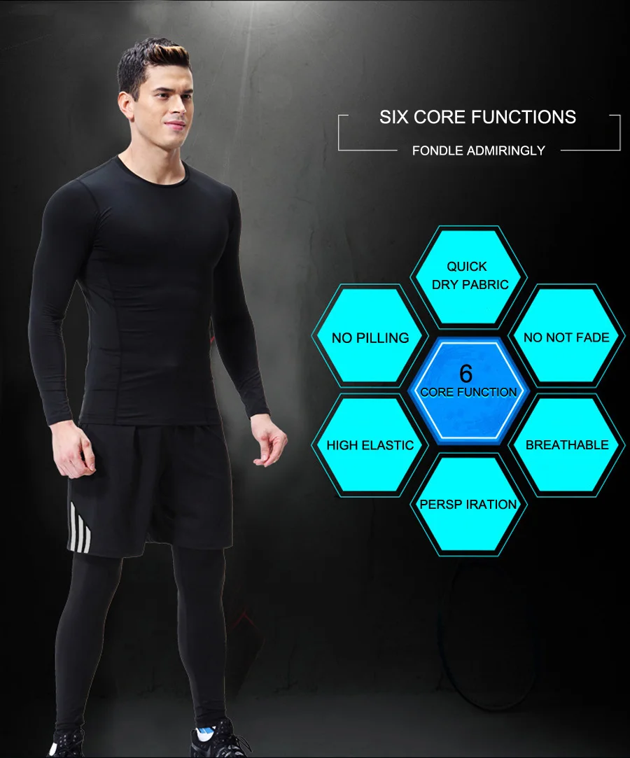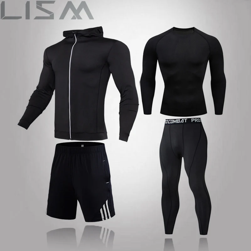 Мужской зимний теплый спортивный костюм, облегающий костюм из 4 предметов для бега, бега, спортивных тренировок, фитнеса, фитнеса