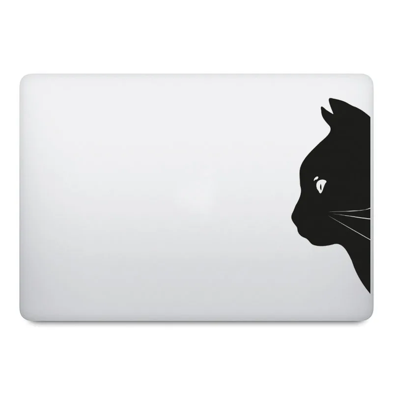 Наклейка для ноутбука Peeking с изображением черной кошки, винилова...