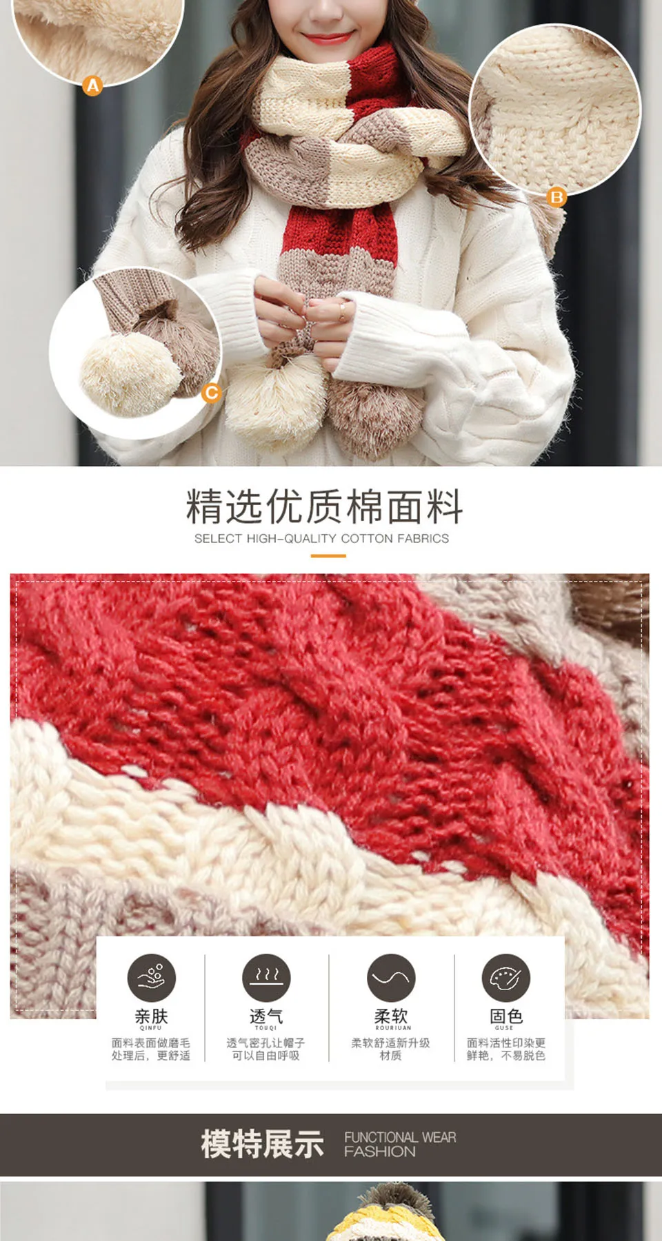 Новинка 2021, женские теплые зимние вязаные облегающие шапки, шапка, шарф, перчатки, Трикотажный костюм из трех предметов, облегающая шапка, шапки для активного отдыха