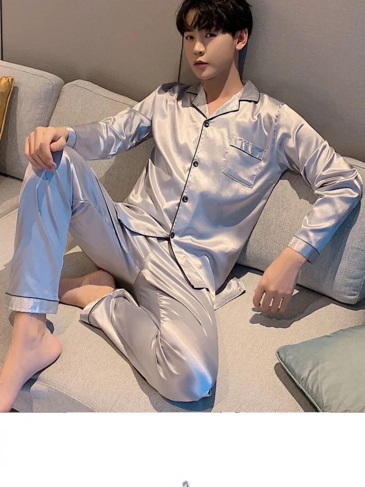 Пижама Мужская домашняя одежда костюм шелковая атласная одежда для ...