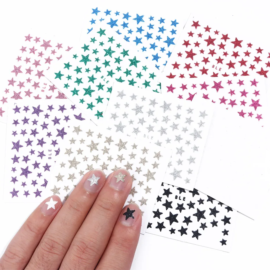 Самоклеящиеся наклейки для дизайна ногтей с 3D звездами, цветные бл...