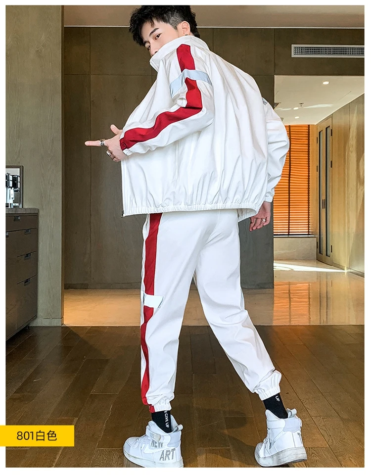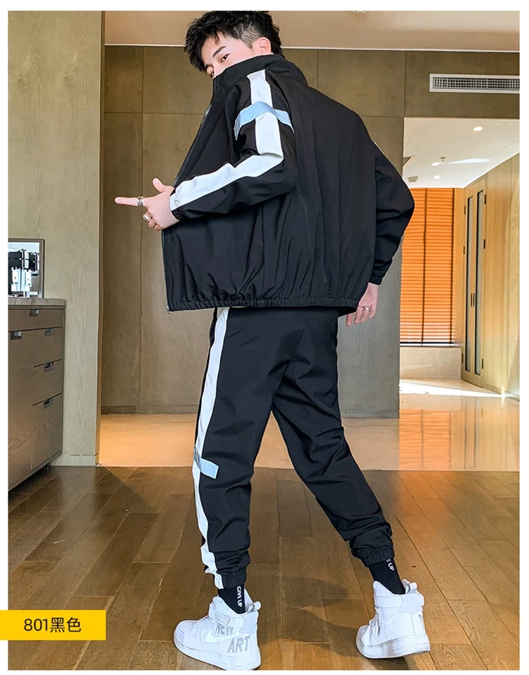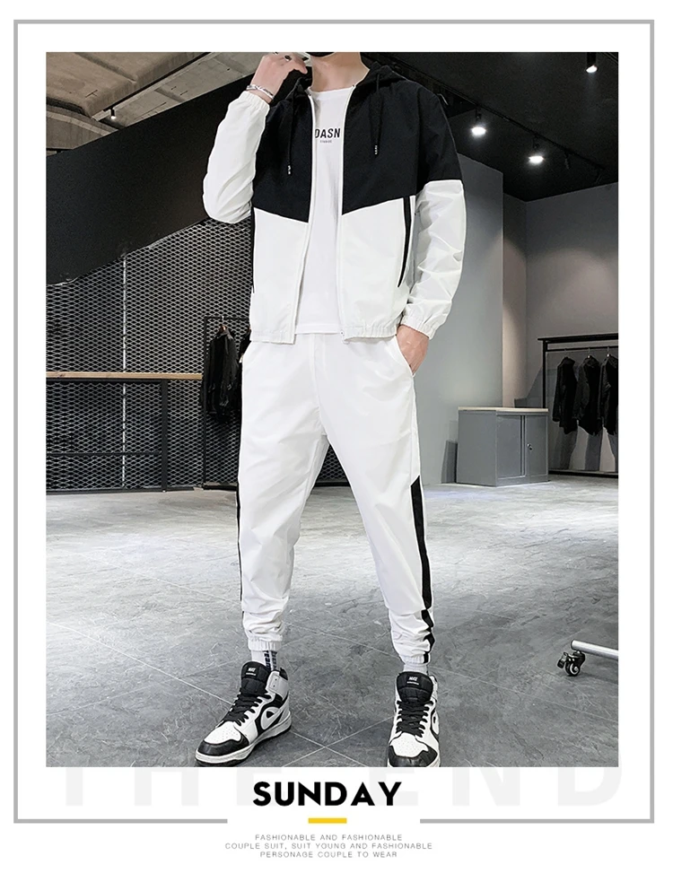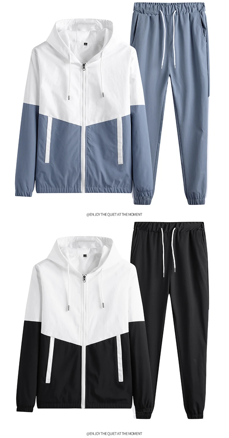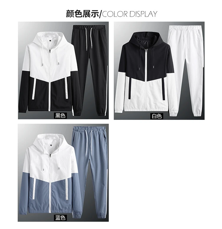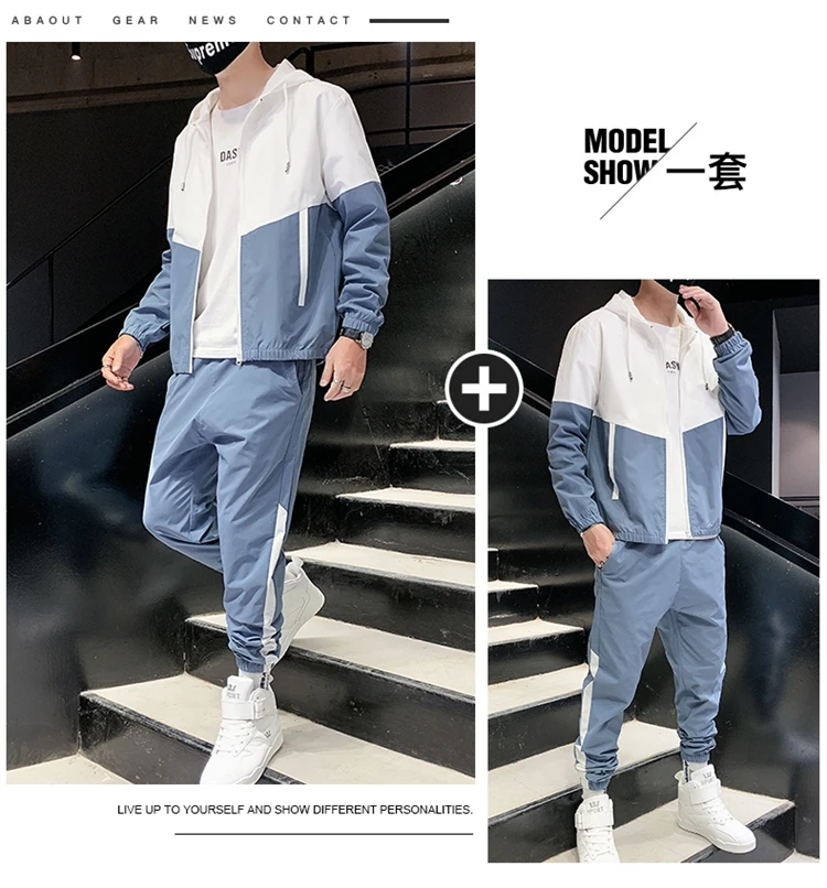 Мужской спортивный костюм, куртка и штаны, в стиле пэчворк, повседневный спортивный костюм, наборы спортивной одежды