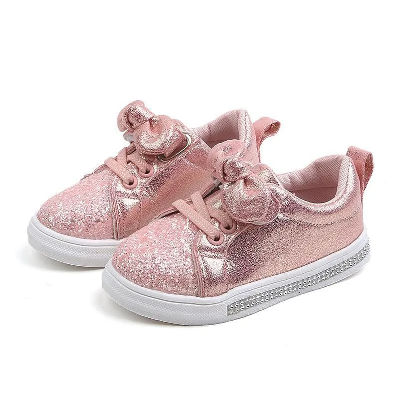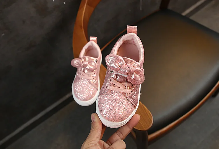 Детская обувь для девочек; Кроссовки для малышей; Детская повседневная обувь с бантом; Блестящие кожаные туфли принцессы для маленьких девочек; Цвет розовый; Сезон весна-осень