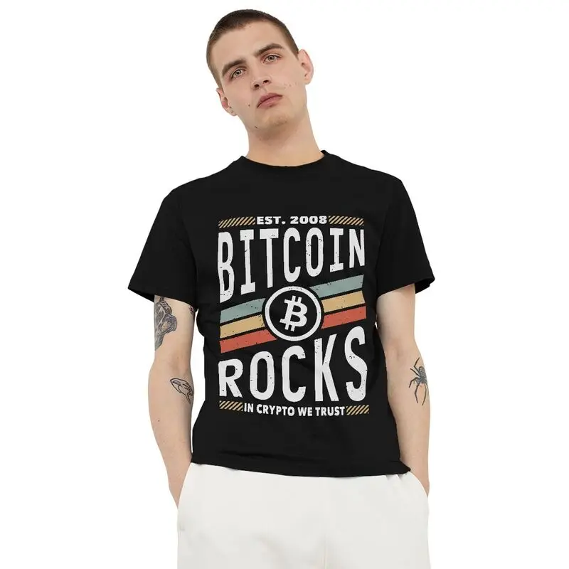 Мужская футболка в стиле ретро с биткоином, хлопковые футболки с коротким рукавом, крутая футболка, дизайнерская футболка в криптовалюты We Trust Rock, футболки, женская одежда