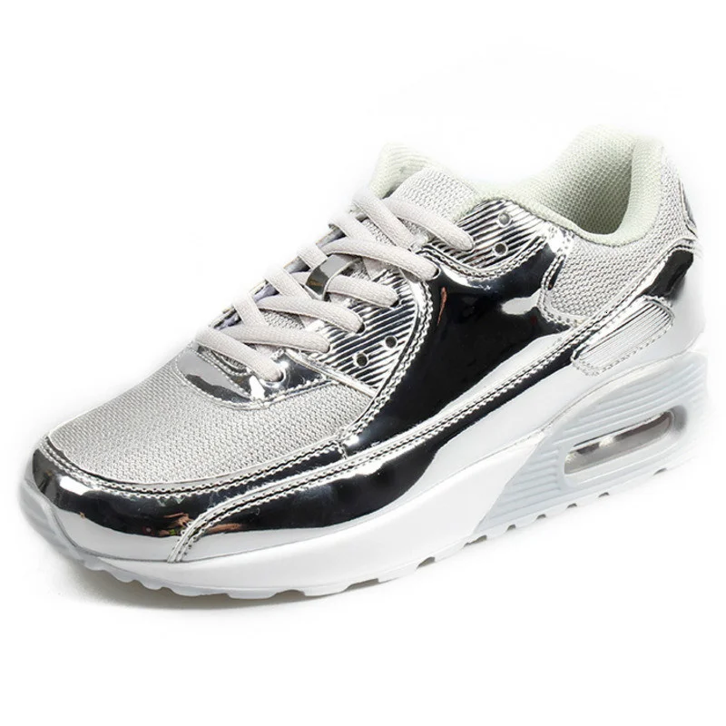 2021 модная мужская повседневная обувь, дышащие сетчатые кроссовки для женщин, уличная спортивная обувь, золотистая Серебристая обувь с воздушной подушкой